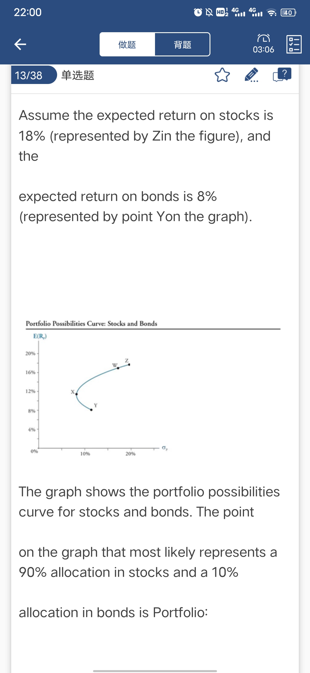 同学,按图中的预期收益来看,Z点是几乎100%投资于股票哈