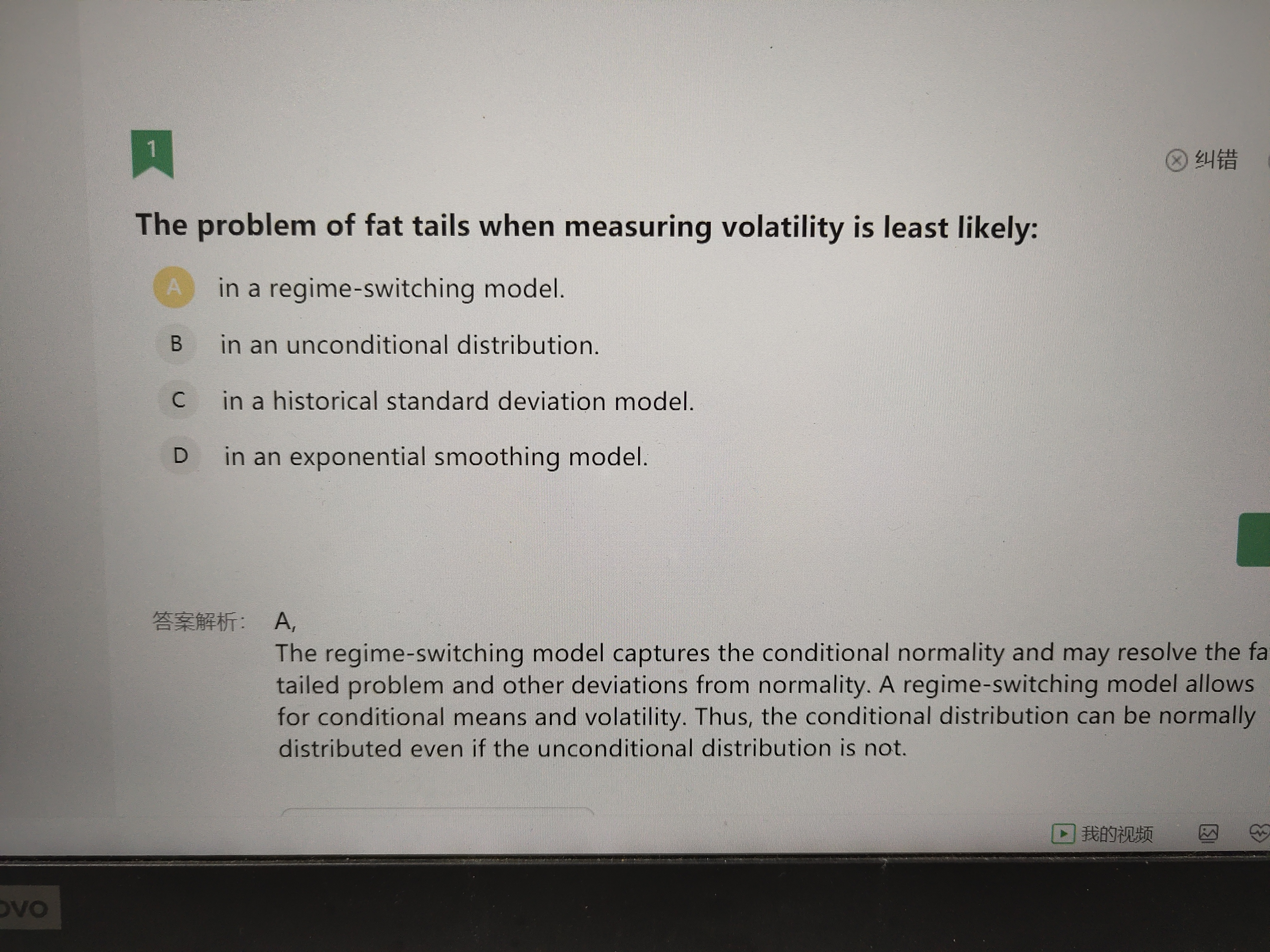 同学,资产收益的无条件分布就是给定任意一天,资产收益率的均值和标准差是不变的,也就算不论市场条件怎么变动,不论时间怎么变动,资产收益率的均值和标准差都是不变的;与之对应的条件分布,就是均值和方差是会随着时间变化而发生变动的,也就是time-varying,这种分布实际上是符合我们在现实世界中的资产收益率分布的真实情况,均值和方差是会随着时间变化而发生变动的,如果说我们用非条件分布来拟合现实世界中收集到的收益率数据,那么对于波动率的变动就无法有效的捕捉,从而无法满足资产收益率的分布服从正态分布的假设,最终得到的分布就不是正态分布,而是一个或肥尾或左偏分布的情况,也就是极端情况比较多,出现极端事件的可能性比较大,这都是因为参数不稳定也就是σ不稳定导致的结果,一旦使用了无条件分布,那么波动率就无法去拟合真实的随着时间变化而变化的数据,也就产生了肥尾或者是左偏的分布情况哈