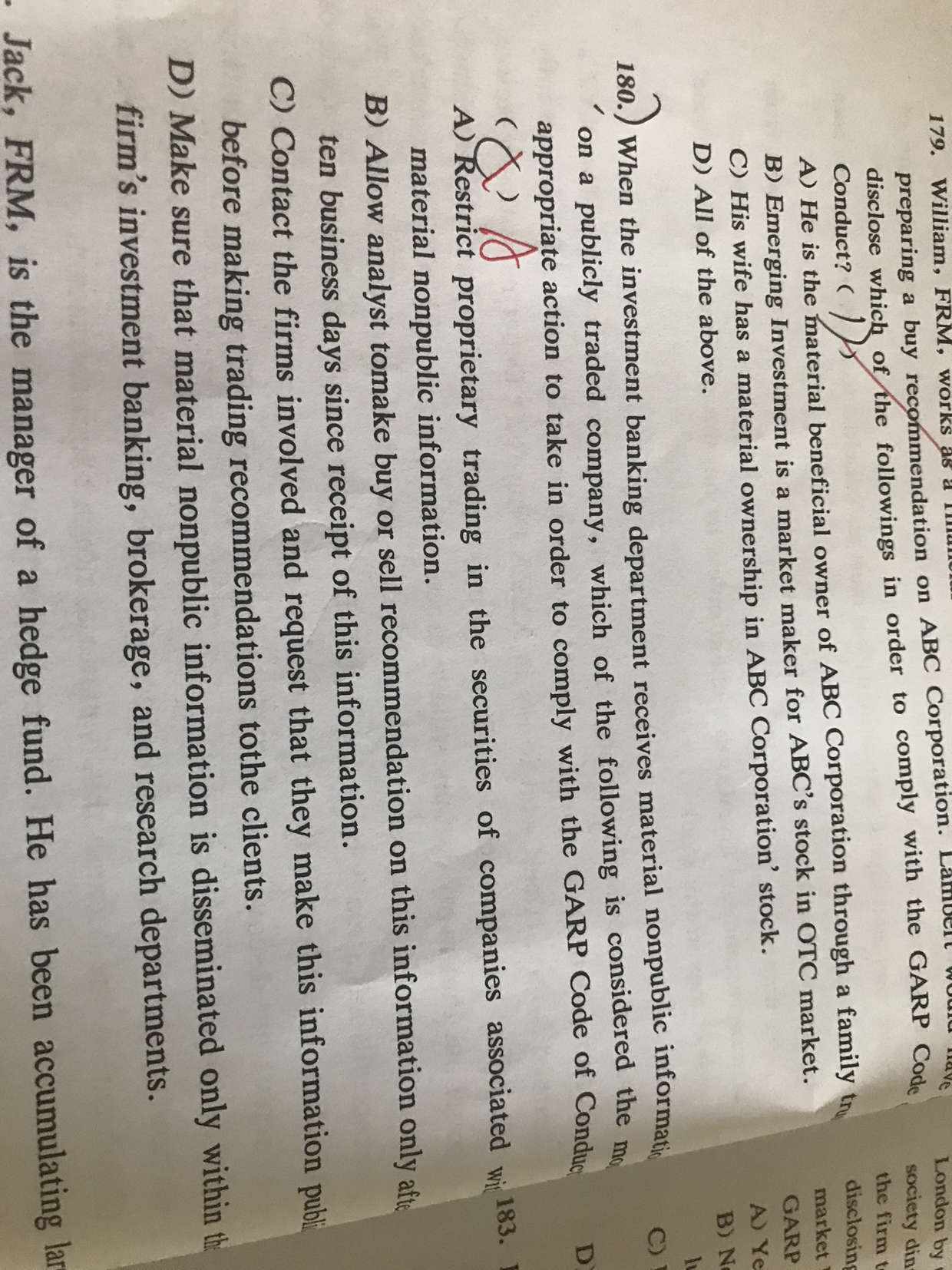 同学,C选项意思是说联系相关公司,并要求他们在向客户提出交易建议之前公开这些信息,是错误的哈,根据合规要求,重大非公开信息的公开不是以向客户提出交易建议为节点的,而是有严格的规定,需要层层审批核准后在适当的时点公开,依公司情况而定哈