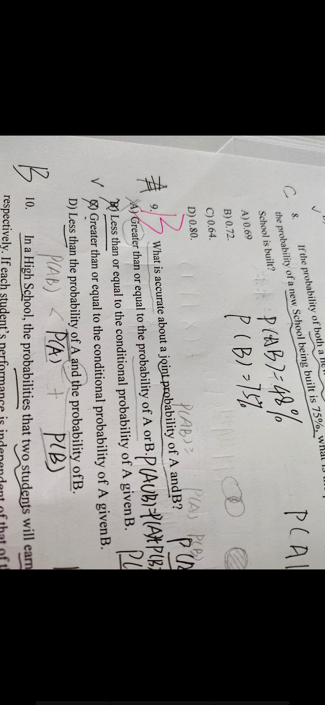 同学,D选项意思是说小于A的概率和B的概率,是错误的,是小于A并B的概率哈