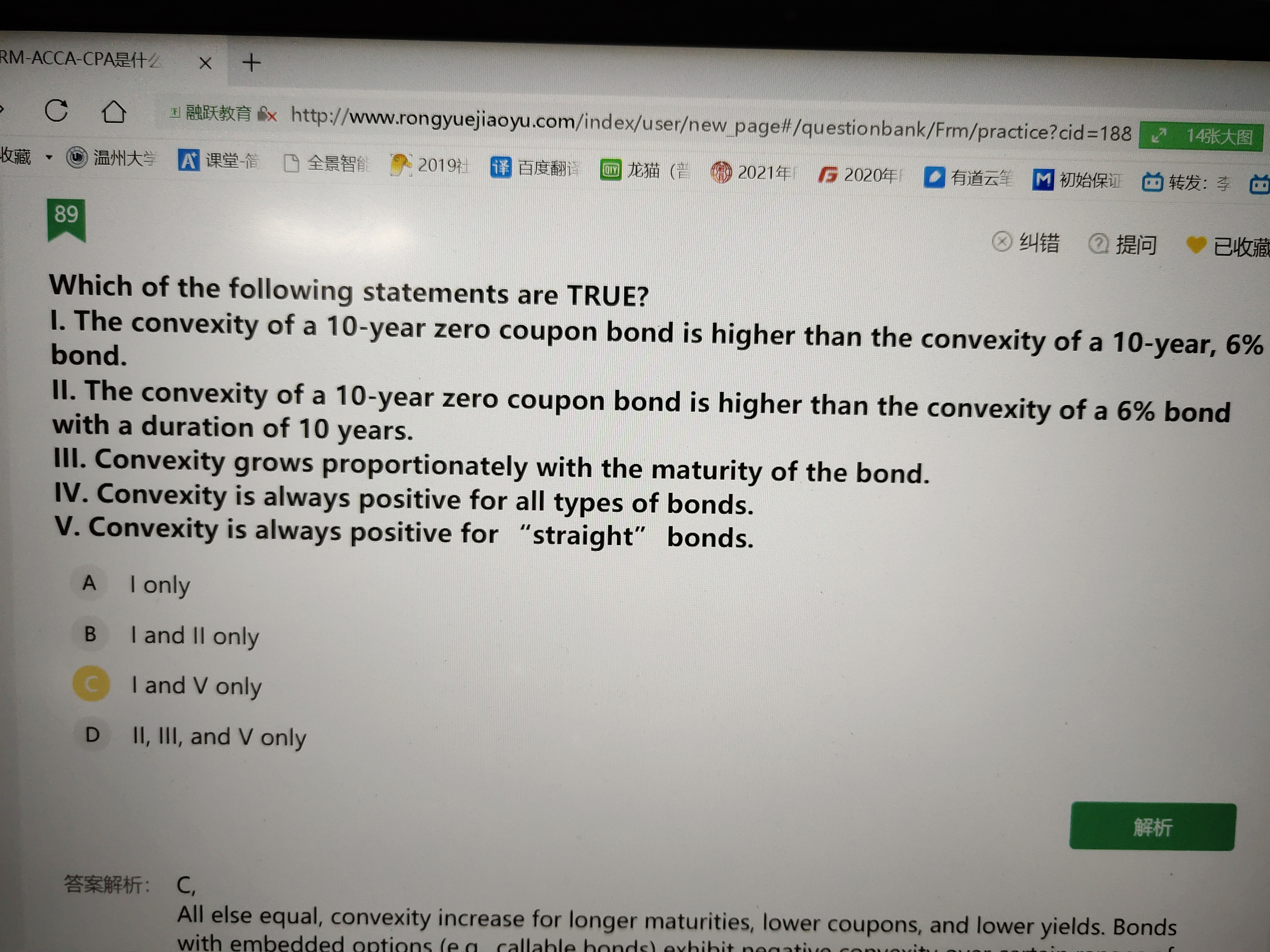 同学你好,一般情况下,凸度是跟久期和期限都是呈正相关的,当久期相等时,就要看期限了,期限越长,凸度就越大,久期为10年的含息债的期限肯定大于10年,所以其凸度也是大于期限为10年的零息债的,所以,第二个说法是错误的。