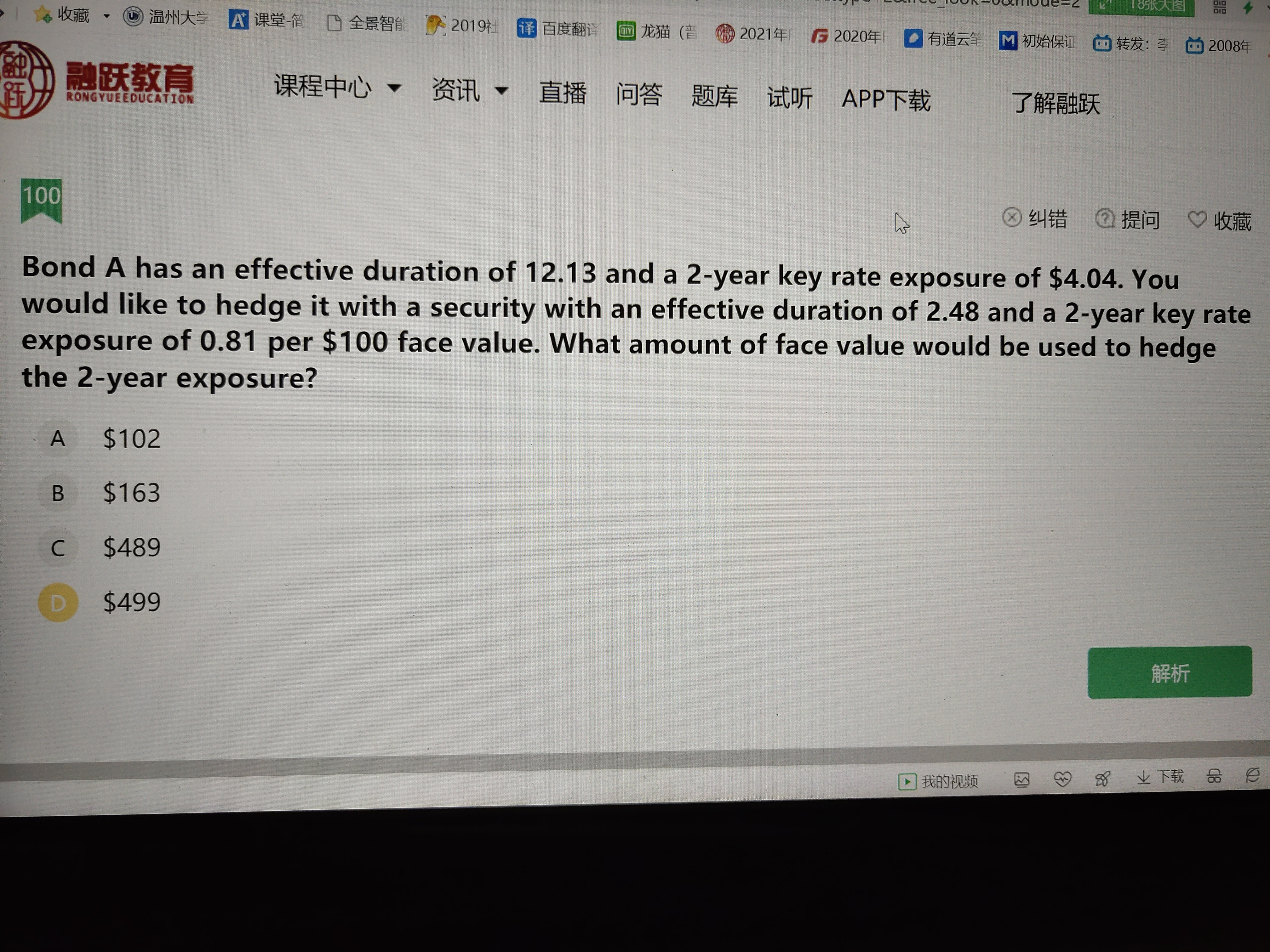 那这个题目为什么不用久期去做对冲呢