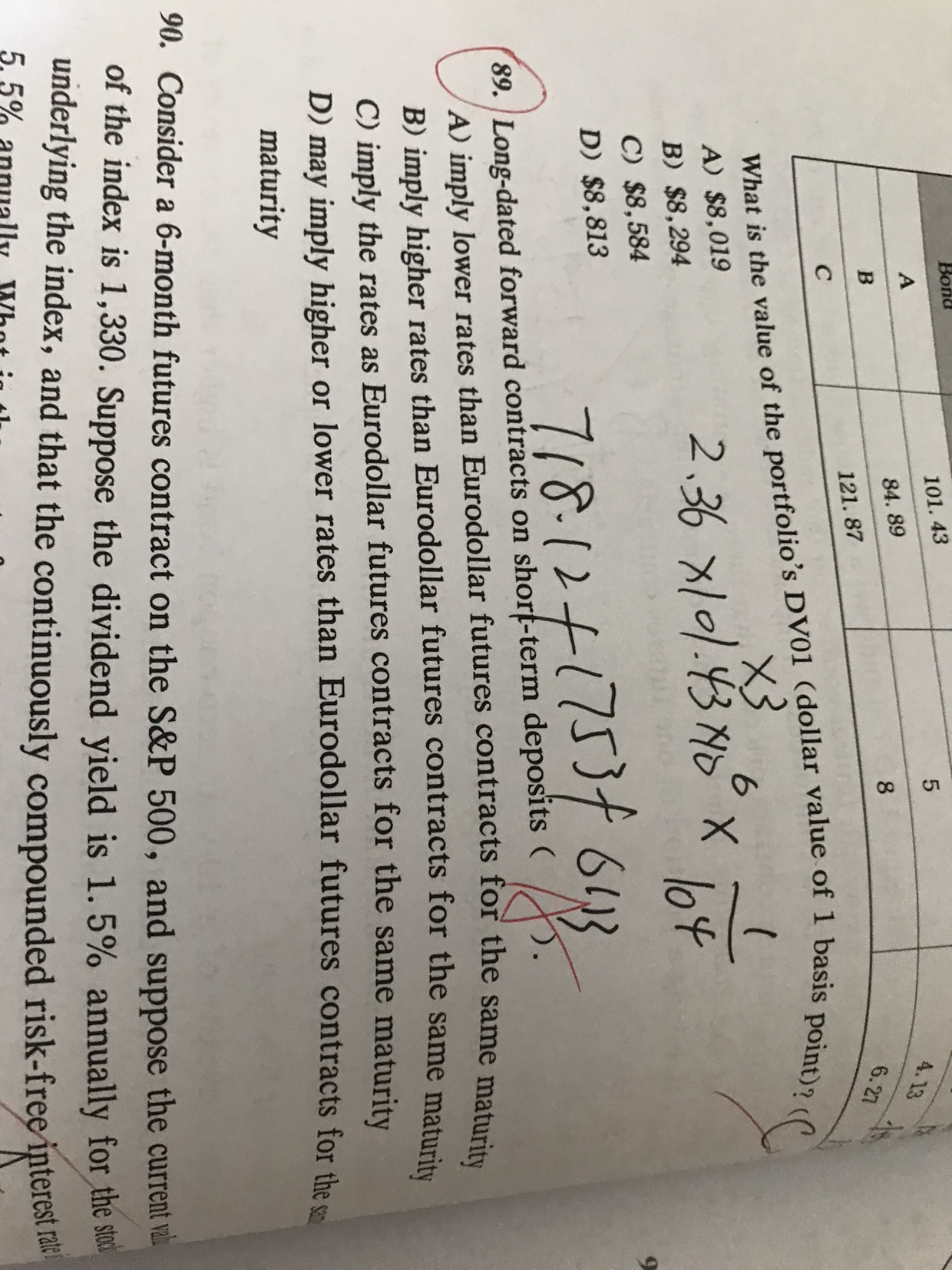 同学你好,这道题说的是持有短期存款的远期合约意味着什么,从选项中可以看出这道题考察的是远期合约与欧洲美元期货之间的关系,涉及凸度调整的知识点。你把短期存款看成是存款者对银行发行短期债券,其价值跟利率成反比,所以可以套用欧洲美元期货章节中欧洲美元期货隐含的远期利率与实际远期合约对应的远期利率之间的关系,即前者大于或者。