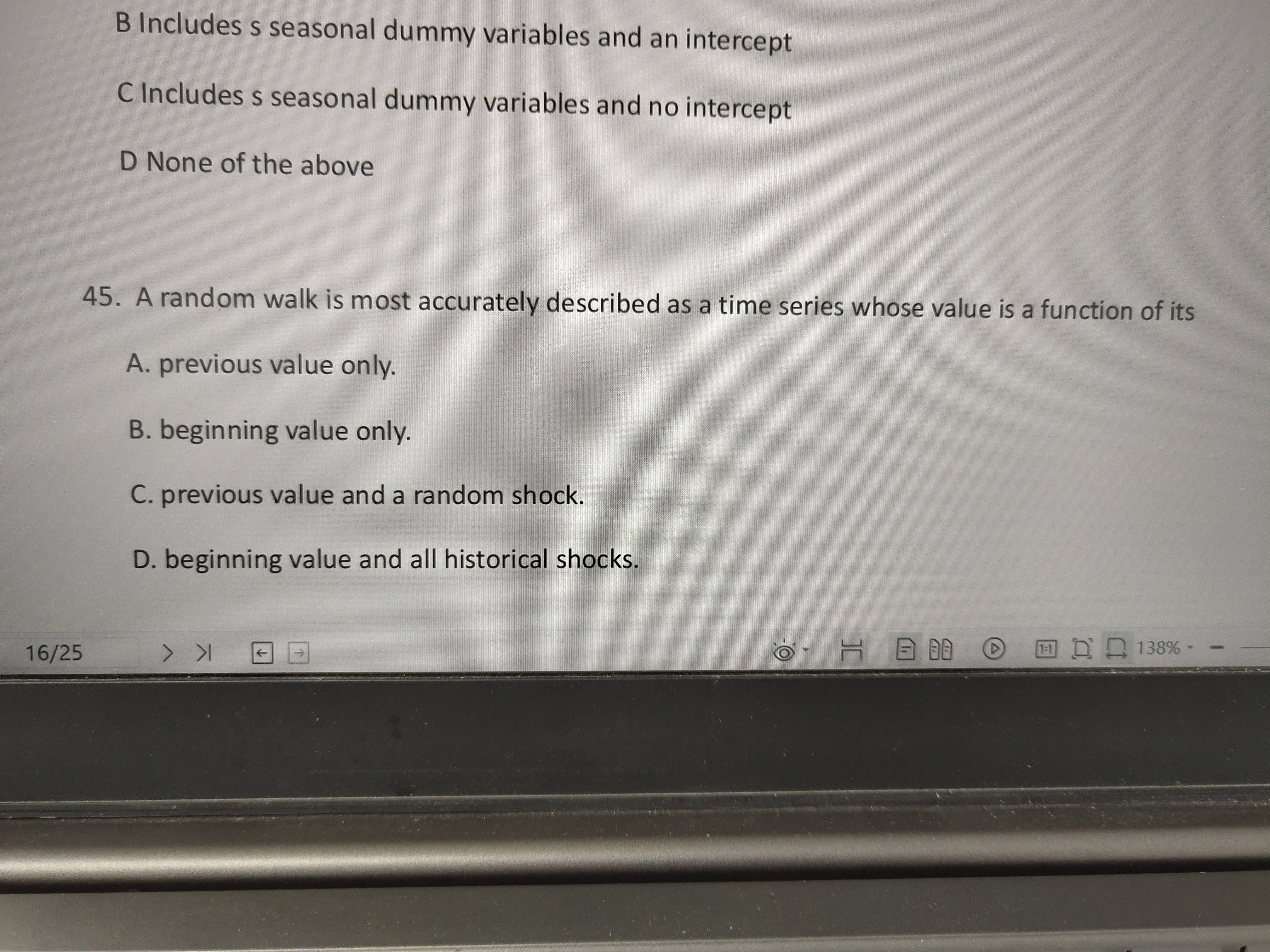 同学,随机游走模型测试时选择一只股票,以当天为基准日,建立一个日收益率序列以前一天为基准日建立该股票的日收益率序列; 计算这两个数列的相关系数;,与此同时,如果相关系数接近零,说明前后两天的股价无关,即股价是随机游走的,市场达到弱式有效。测试时两个收益率的时间滞后天数也可以是2 天或N 天,日收益率也可换成周收益率、月收益率等,测试数列的时间长度应包括多种不同时长(N年),选择的股票种类应足够多。随机游走模型假设各时期的收益率是独立的,并且不同时期的收益率的分布是相同的。是解析的哪里不理解呢,可以圈出来哈