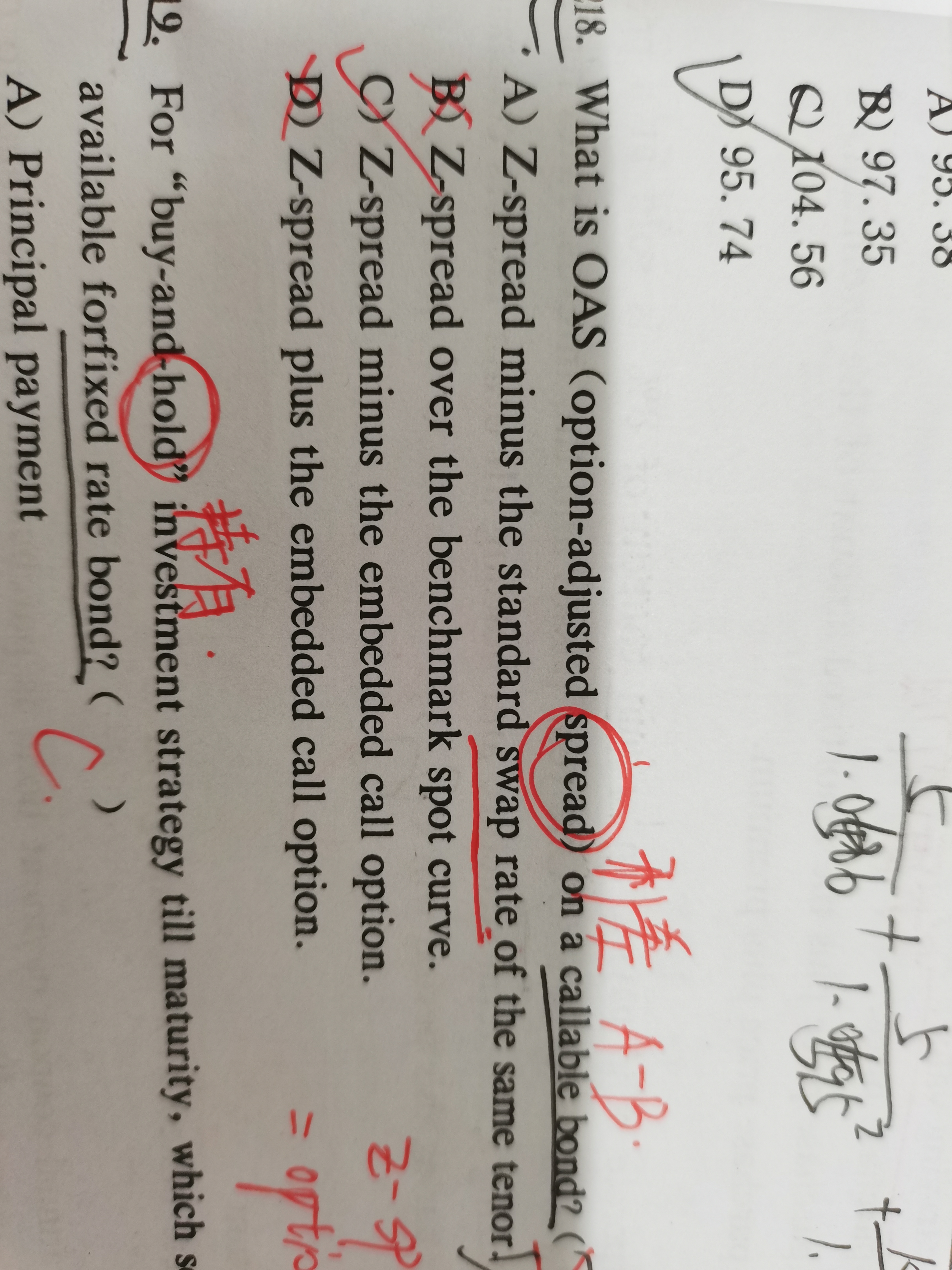同学,期权调整价差(OAS)是对固定收益证券利率和无风险收益率的价差的测量,然后将该价差考虑到嵌入期权进行调整。通常,分析师使用国债收益率作为无风险利率。这个价差被加到固定收益证券价格中,使无风险债券价格与债券价格相同。期权调整价差(OAS)衡量的是带有嵌入选择权的债券(如MBS或可赎回债券)与美国国债的收益率之差。内嵌期权是一些固定收益证券中包含的条款,允许投资者或发行人采取具体行动,如赎回发行。