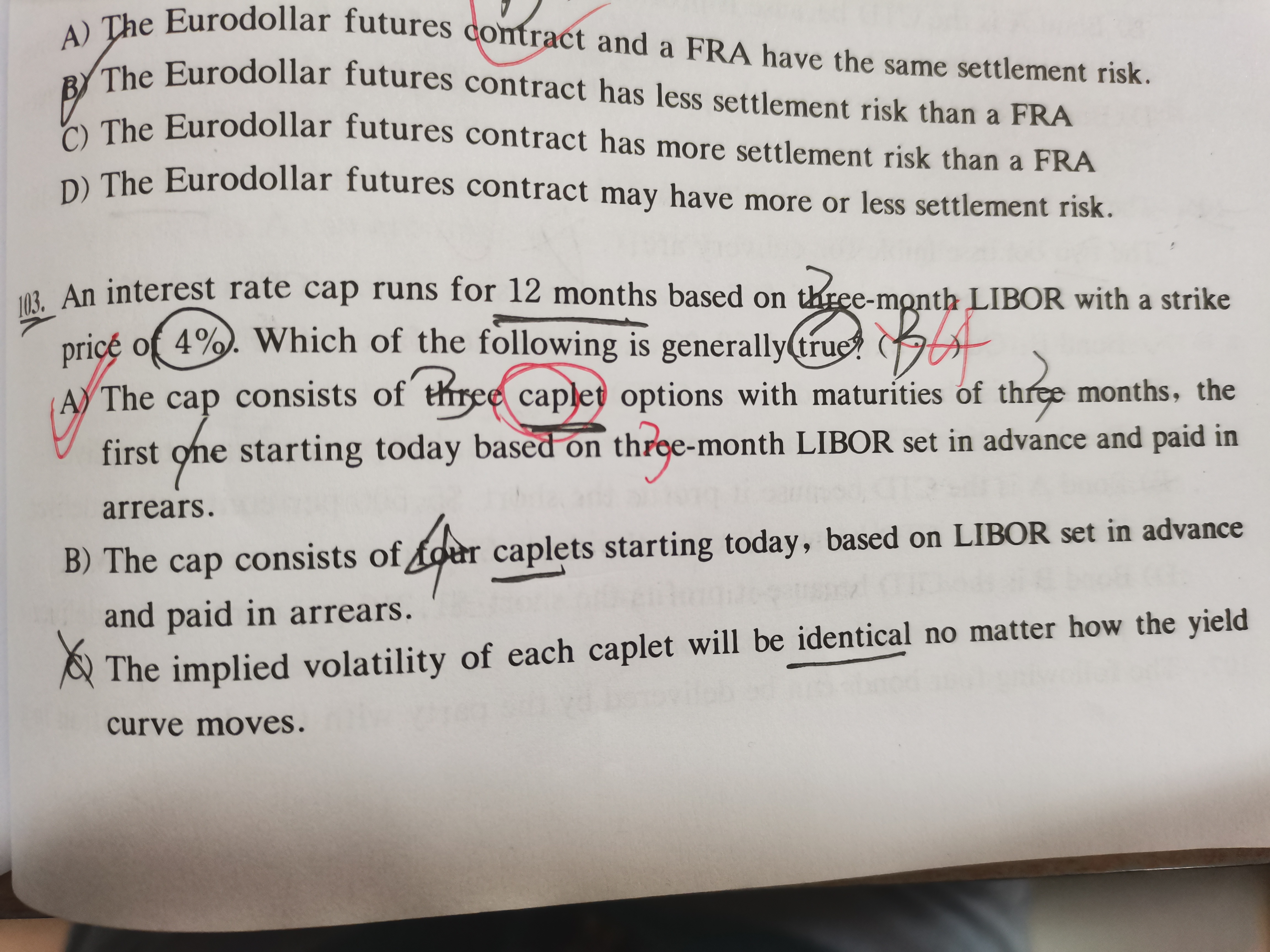 同学,利率上限(Cap)、利率下限(Floor)和利率上下限(Collar),这些期权实际上是多个利率上限单元(Caplet)的复合,总的期限为12个月,一个Caplet可以对冲3个月的风险,因为到最后一期时就要交割了,所以需要3份Caplet哈