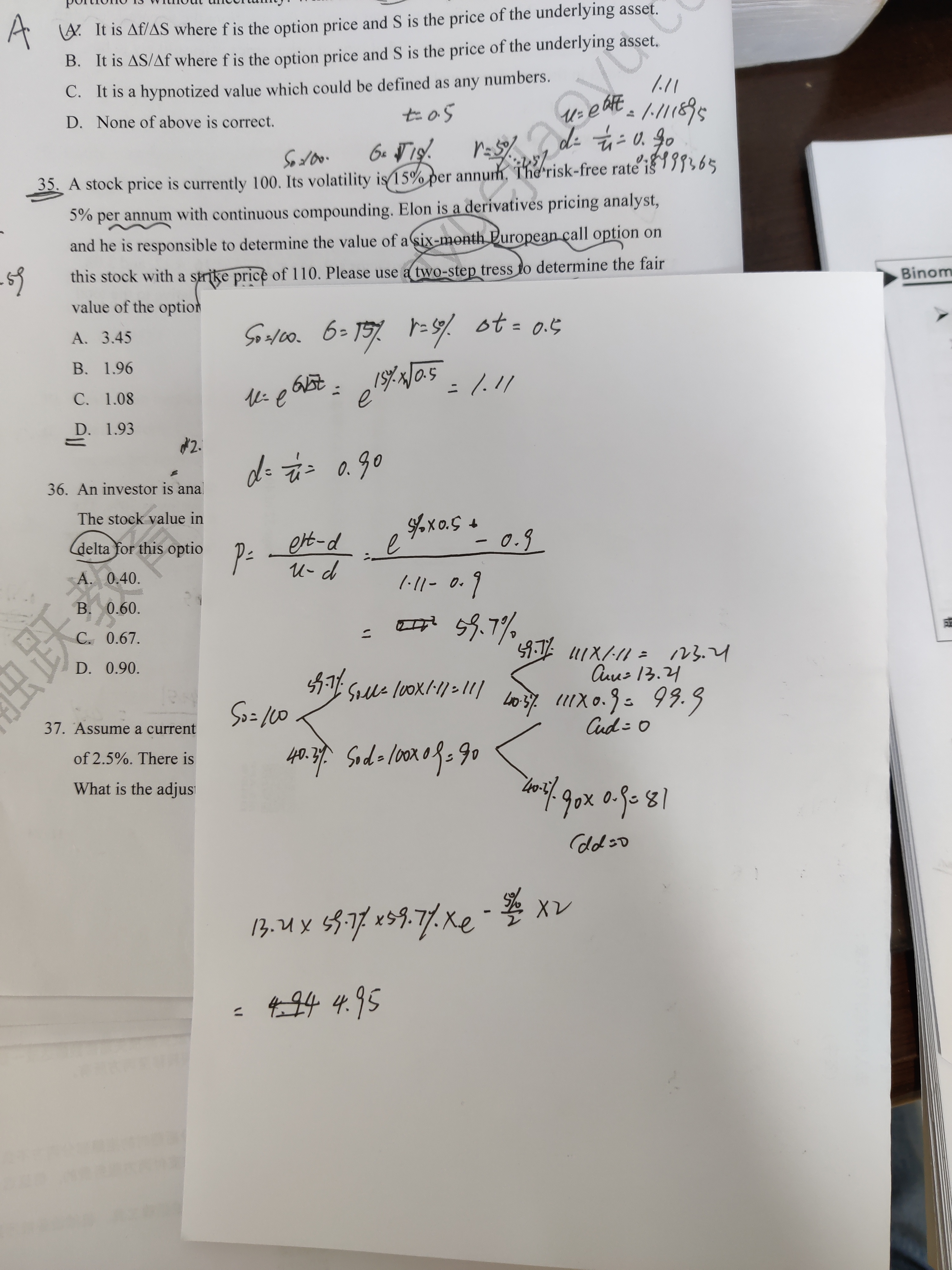 同学,六个月期限分为两步,delta t=0.25哈