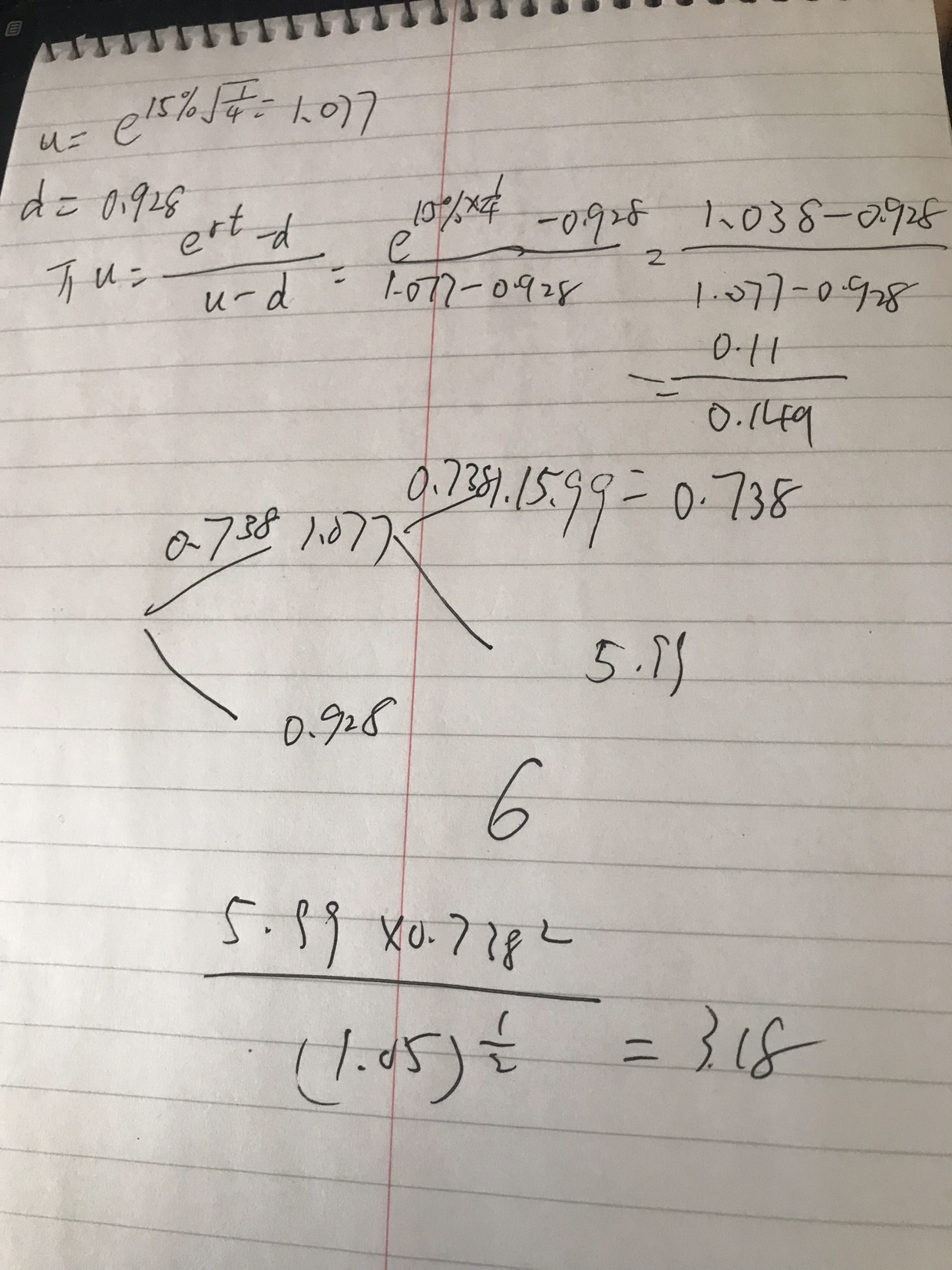 同学,六个月期限分为两步,delta t=0.25