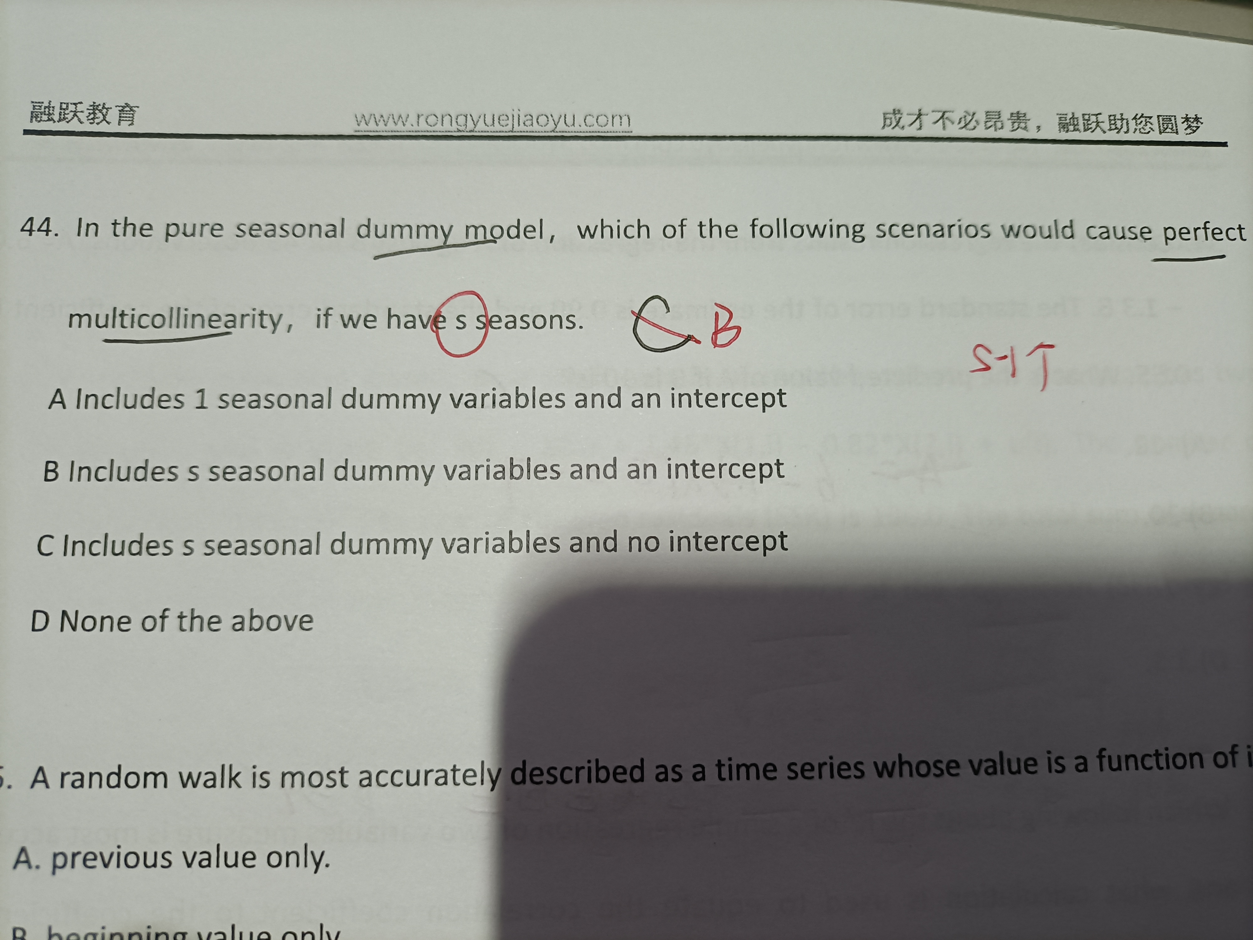 同学,虚拟变量只需要S-1个,这时的intercept就是对应的值哈