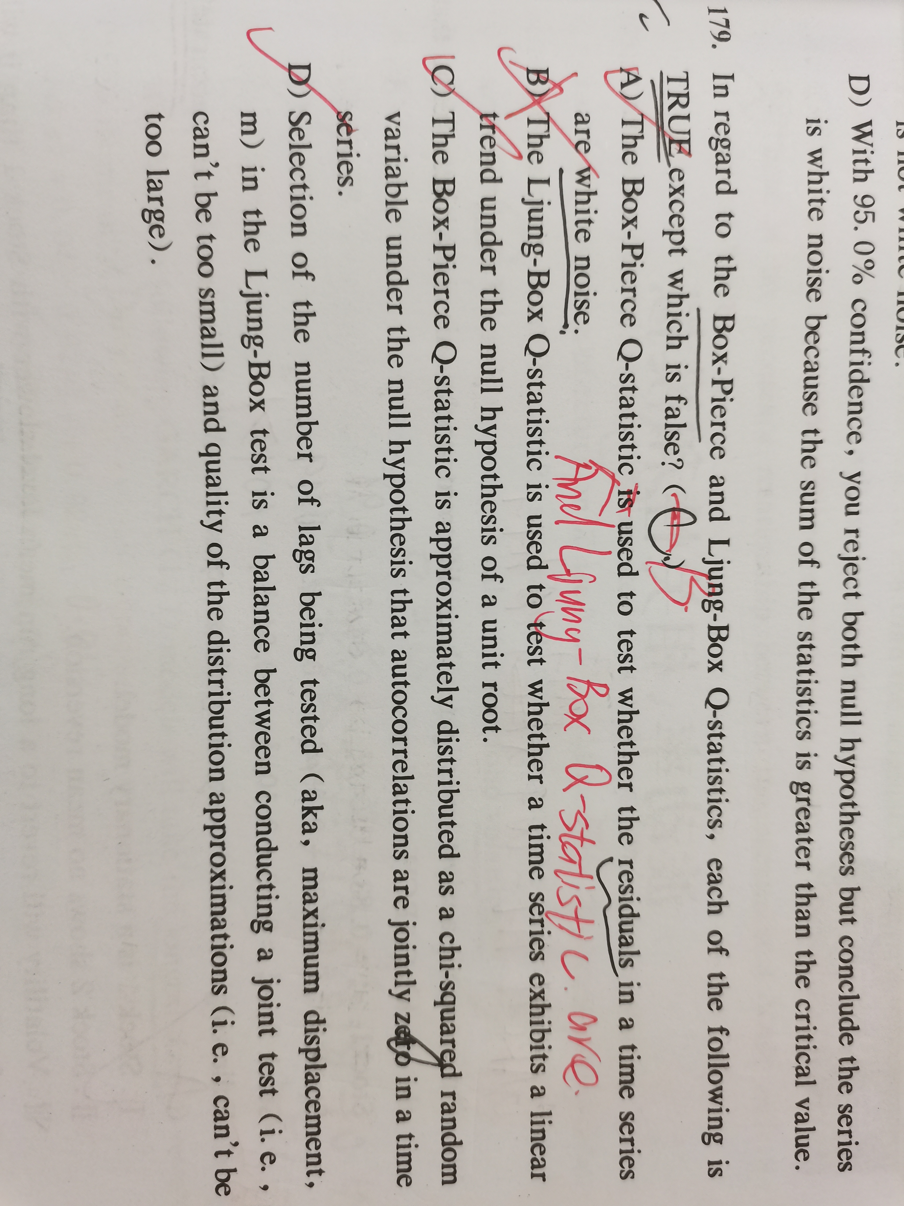 同学你好,关于这两个检验统计量,只需要知道BPQ是服从卡方分布的,可以用来对白噪音进行检验,原假设是:该时间序列是白噪音,备择假设相反;而LBQ统计量是在BPQ的基础上做了一些调整,比较适合小样本的白噪音检验。