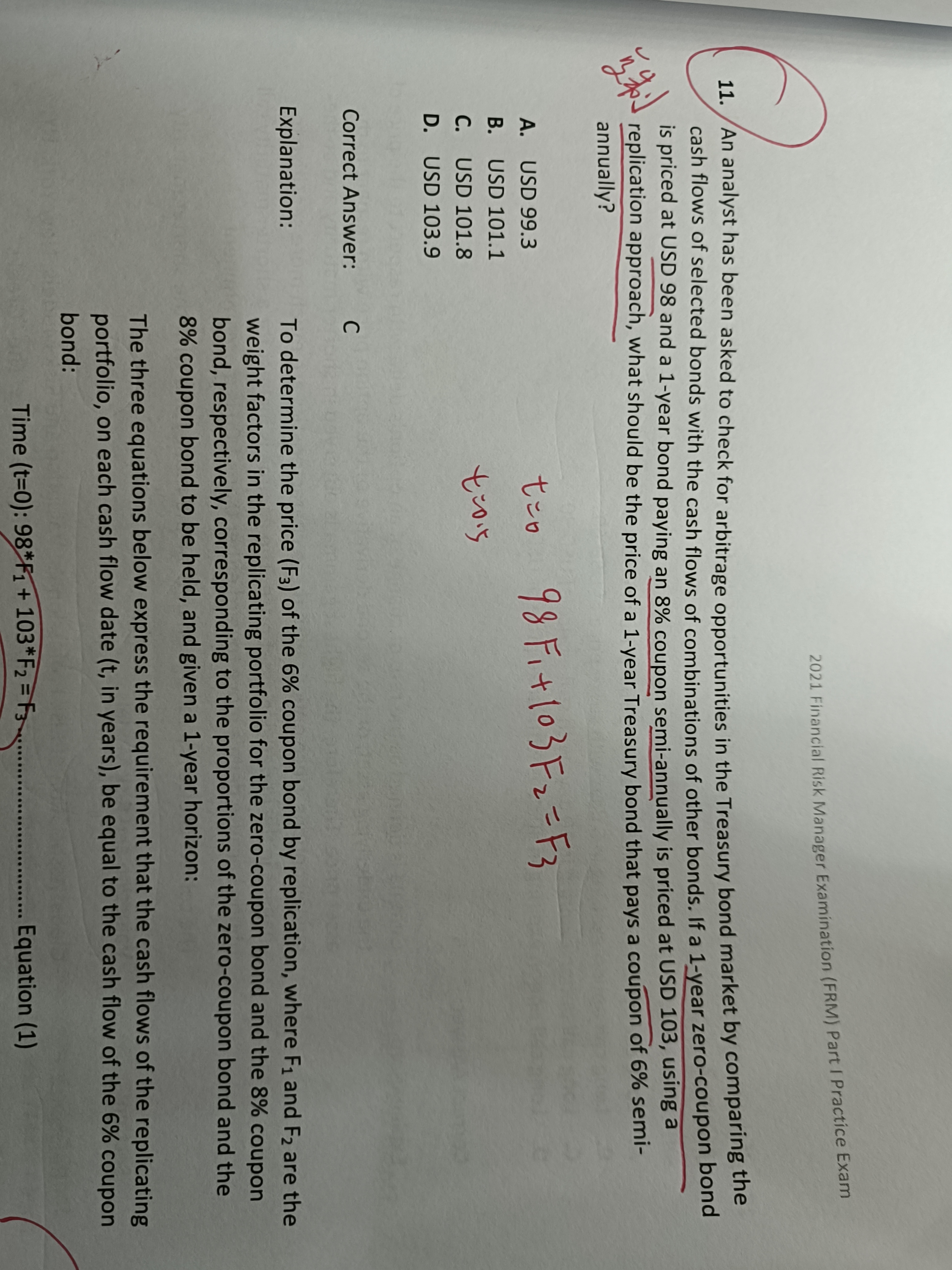 同学,题干意思就是根据现金流匹配的原则来复制产品,根据现金流求出权重后,再根据权重来求价格哈