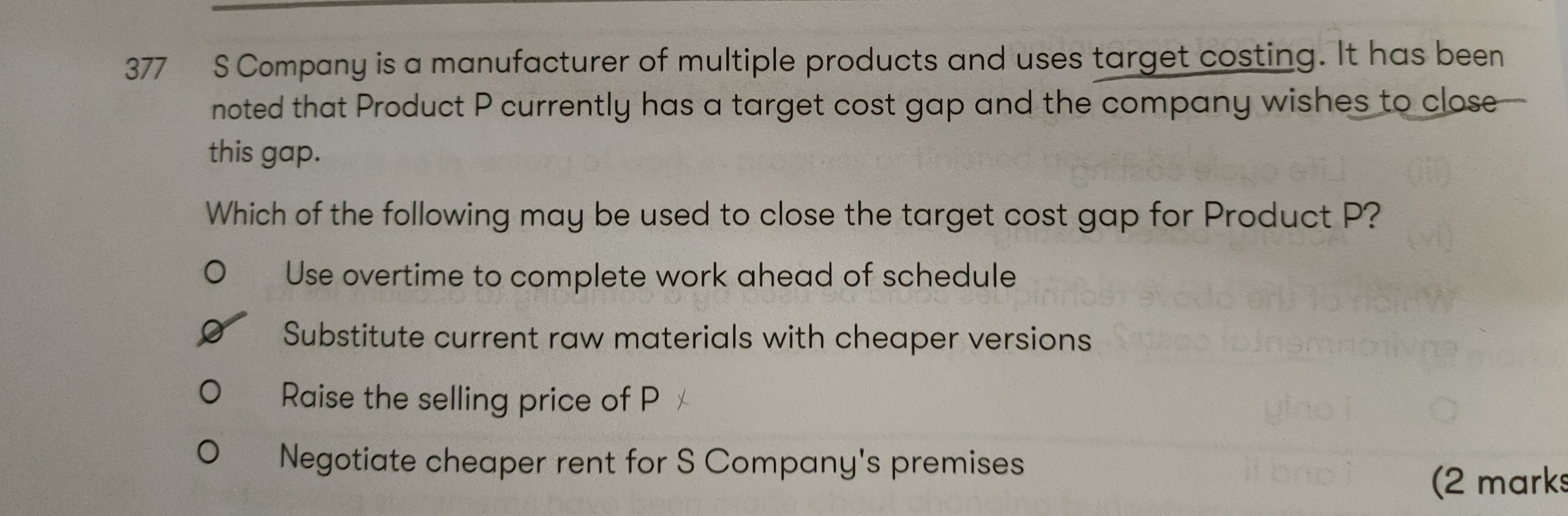 同学,题目说的是可以使用来缩小差距的,可以将质量降低到可接受水平。缩小差距的方法是降低直接成本或者是变动成本,跟固定成本无关,rent是固定成本。