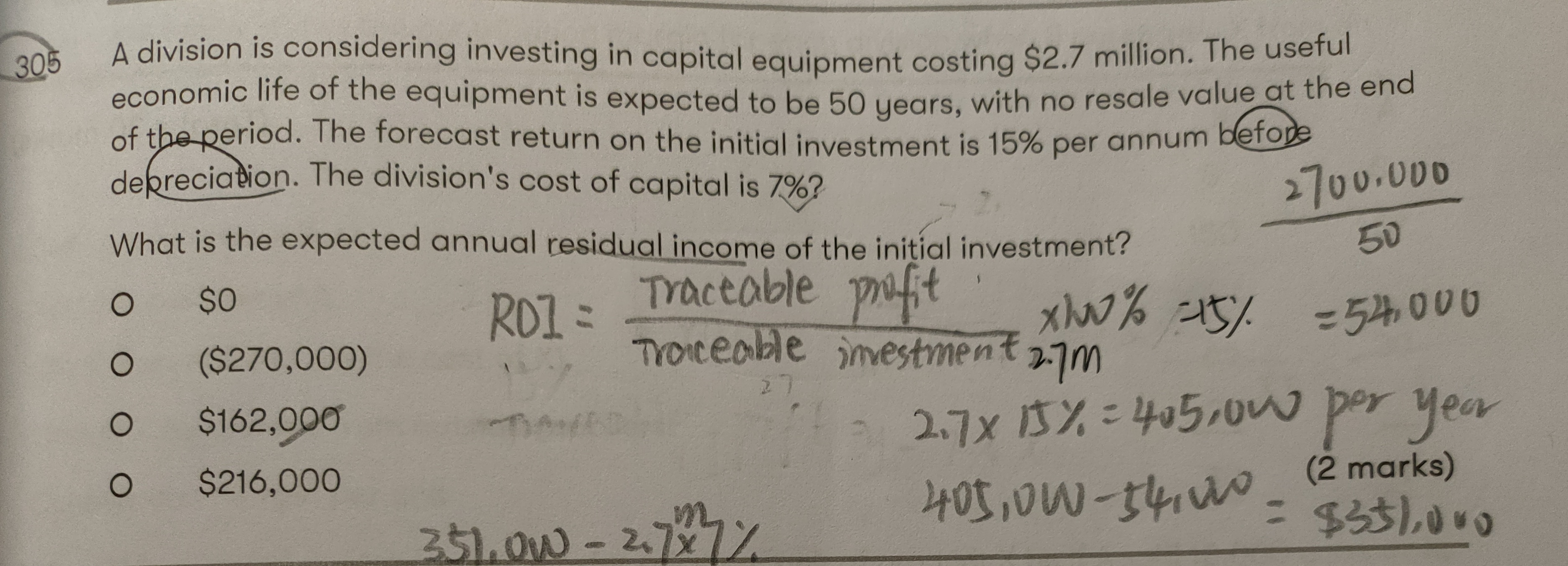 同学,RI是需要考虑折旧的,是折旧后的利润。