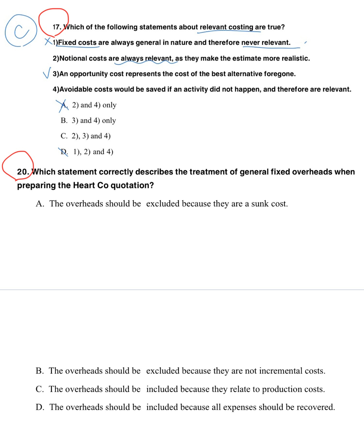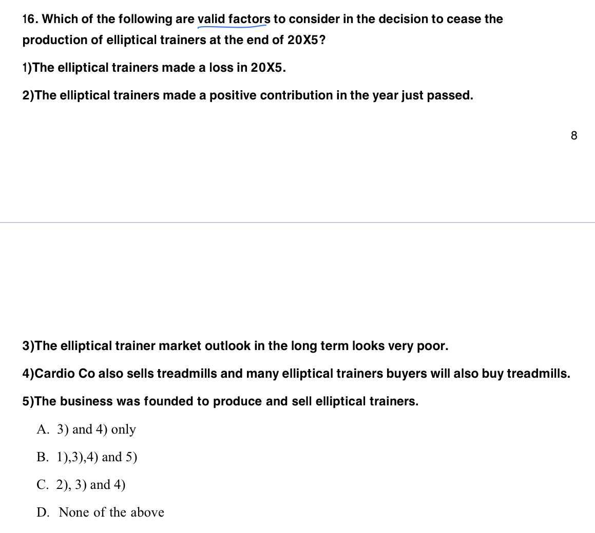 同学,16题选A,做中止运营的决策要看的是长远情况和contribution。17题选C。18题未看到题目。