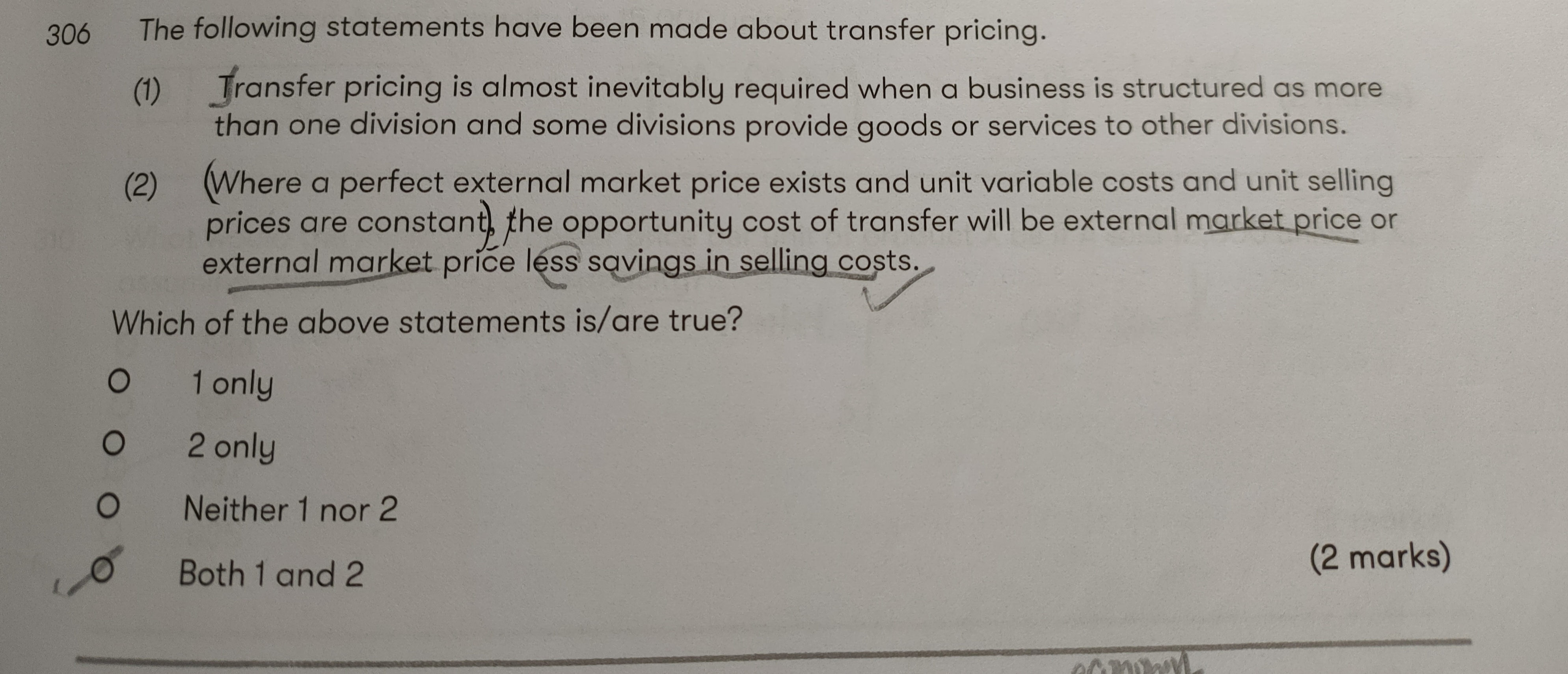 同学,(2)中描述是有完美的外部市场可以买卖,VC和SP都是一样的,所以机会成本就跟向外销售是一样的,跟售卖其他产品的的contribution有什么关系吗?这是课程中的知识点,需要记住就好。