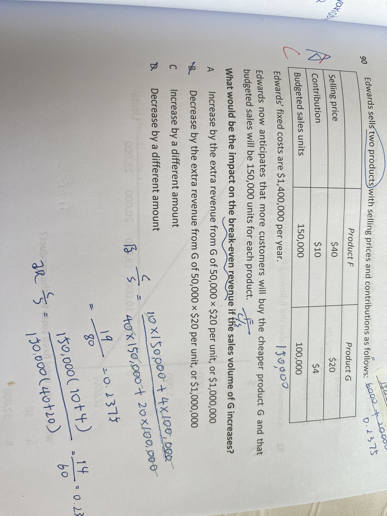 同学,你算出了前后的C/S,是降低的,那么FC/C/S就是增加的,但是至于增加多少不是单纯的多出来的卖的产品G,他们不是相等的,是不相关的。