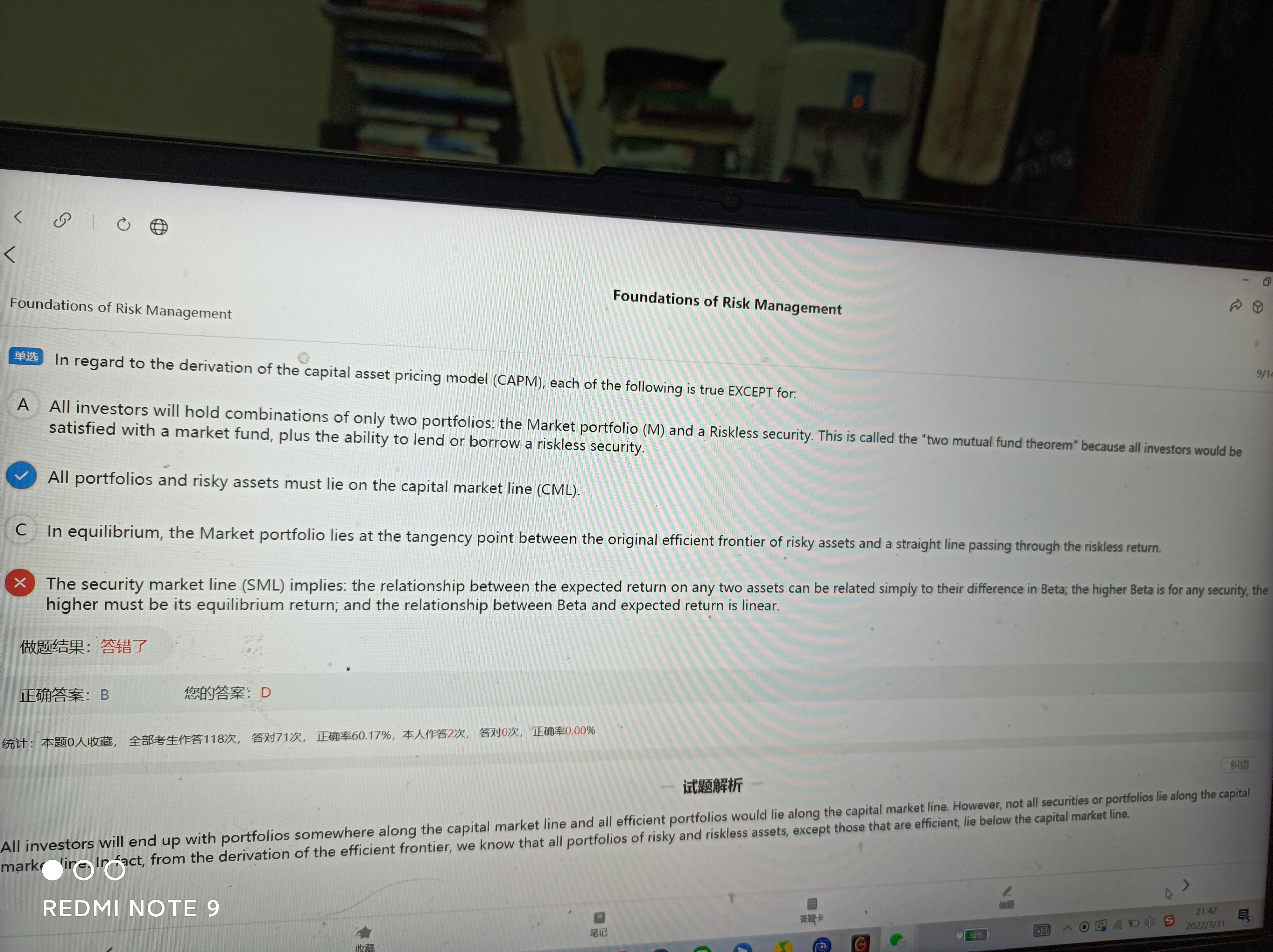 同学,这里D选项表述的是SML的线性关系,横轴为beta,纵轴是E(Rp)
