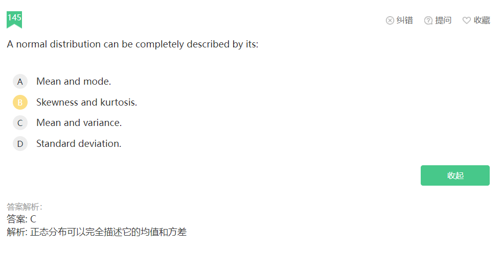 同学你好,描述一个分布的维度有四个(均值、方差、偏度、峰度),但对于正态分布而言,均值和方差基本就可以完全对正态分布做一个描述了,因为正态分布的偏度为0,峰度为3,这些都是性质,可以作为已知条件的。