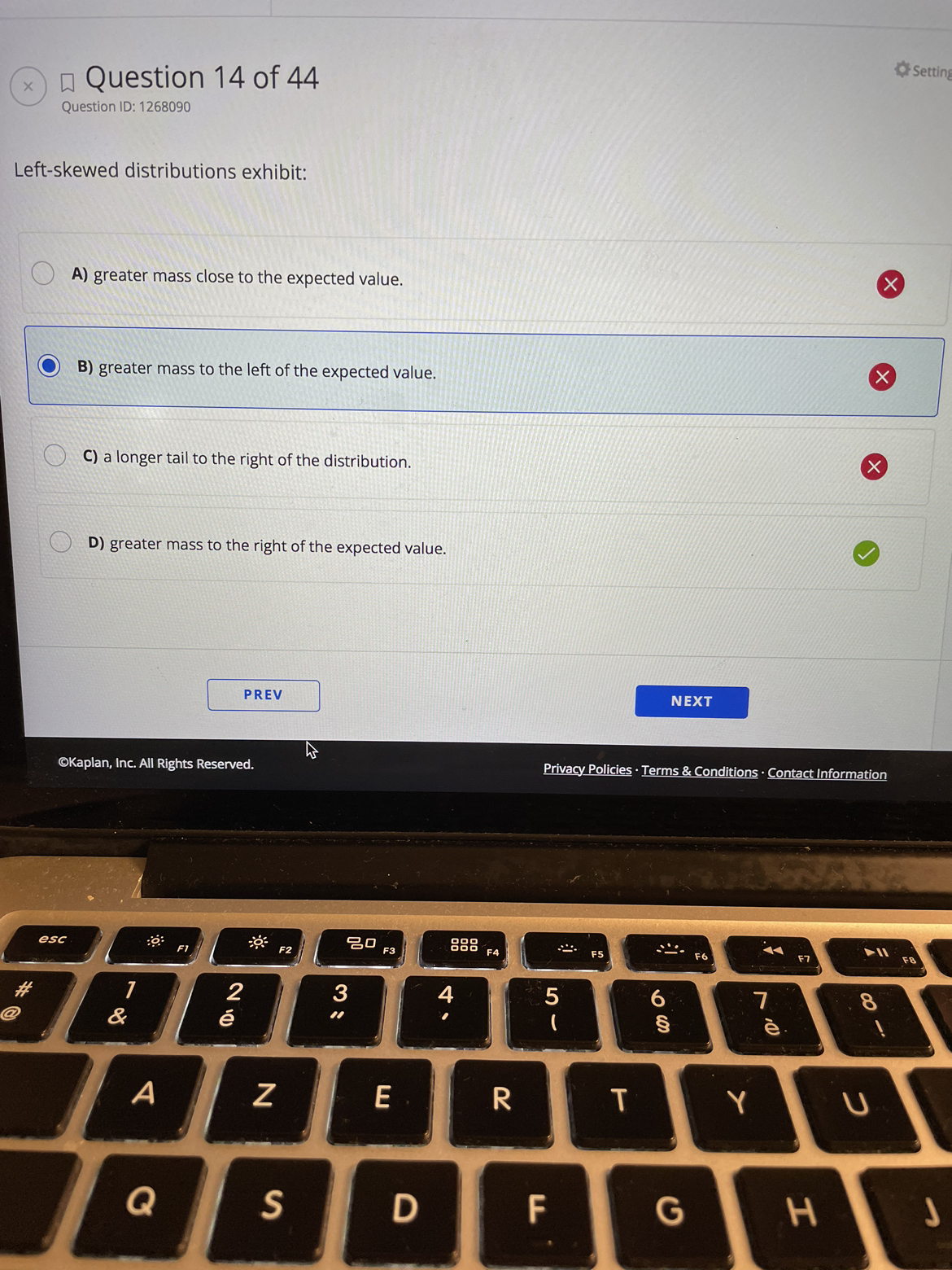 同学,是左侧极端值较多,选项说的是expected value哈