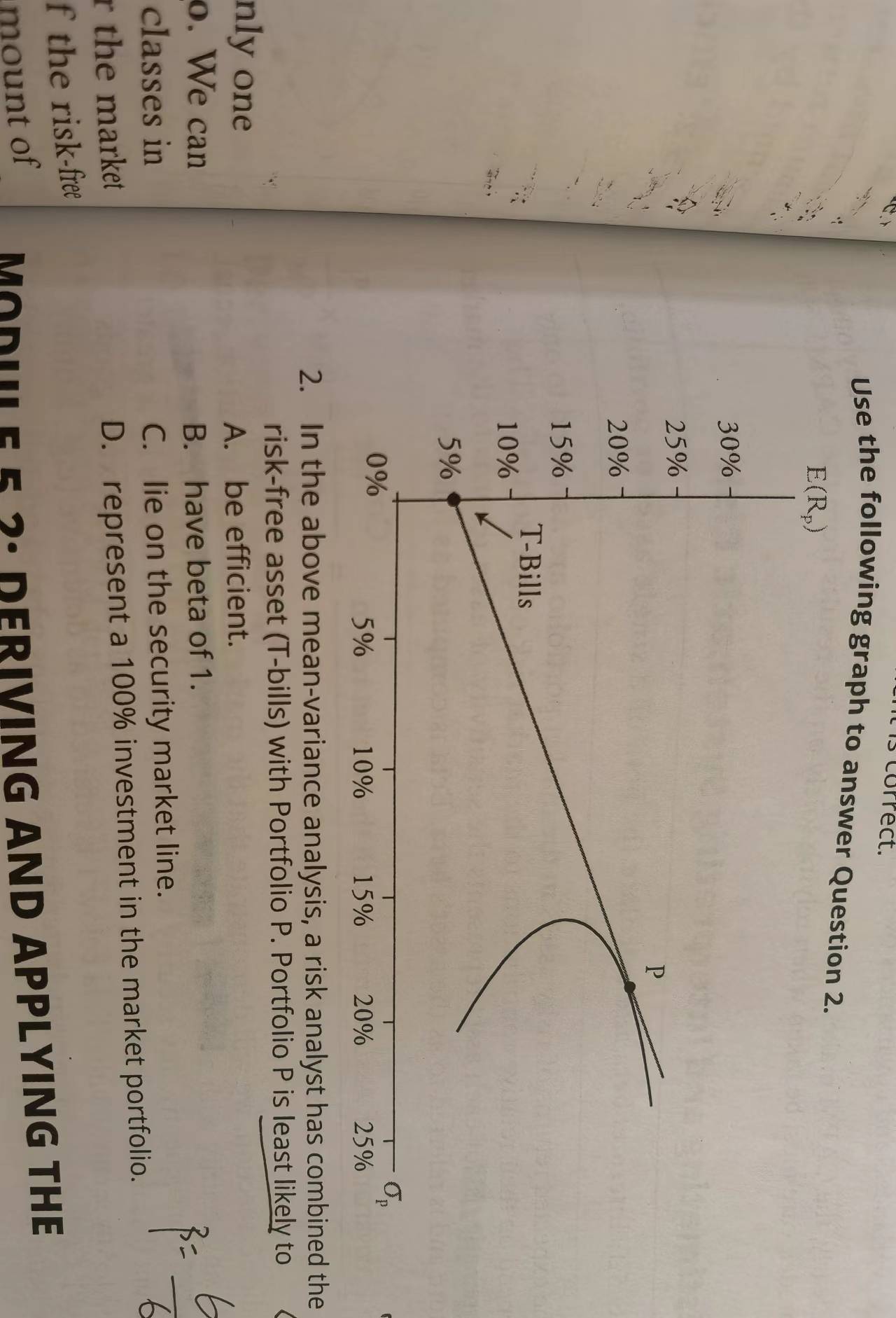 同学,这里考察的不是CML与SML线上点的关系,而是着重强调SML考虑的是系统性风险beta,此处图像横轴是投资组合风险,没有涉及beta,所以选择C选项