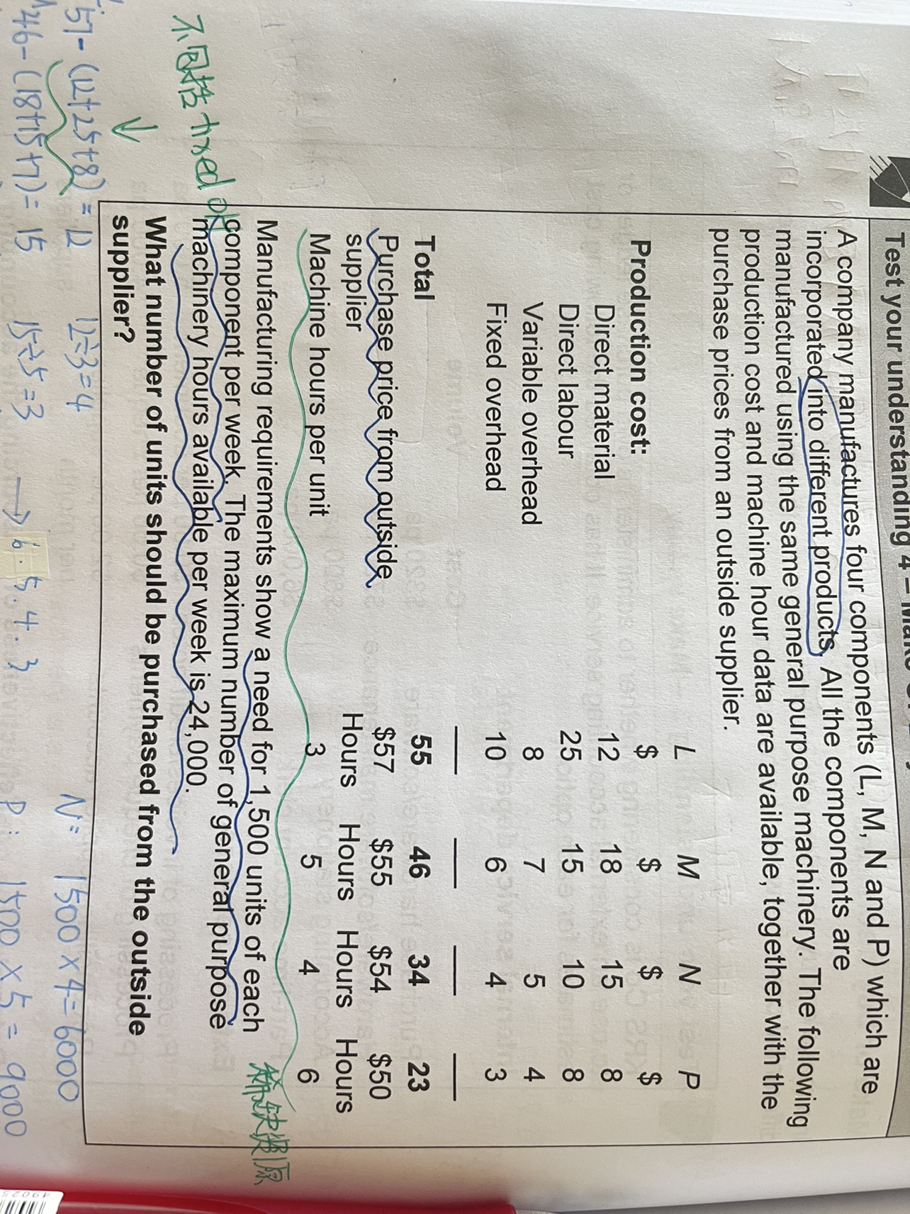 同学,FOH是一定要发生的,是分摊到LMNP上的,自己生产还是采购都有FOH。
