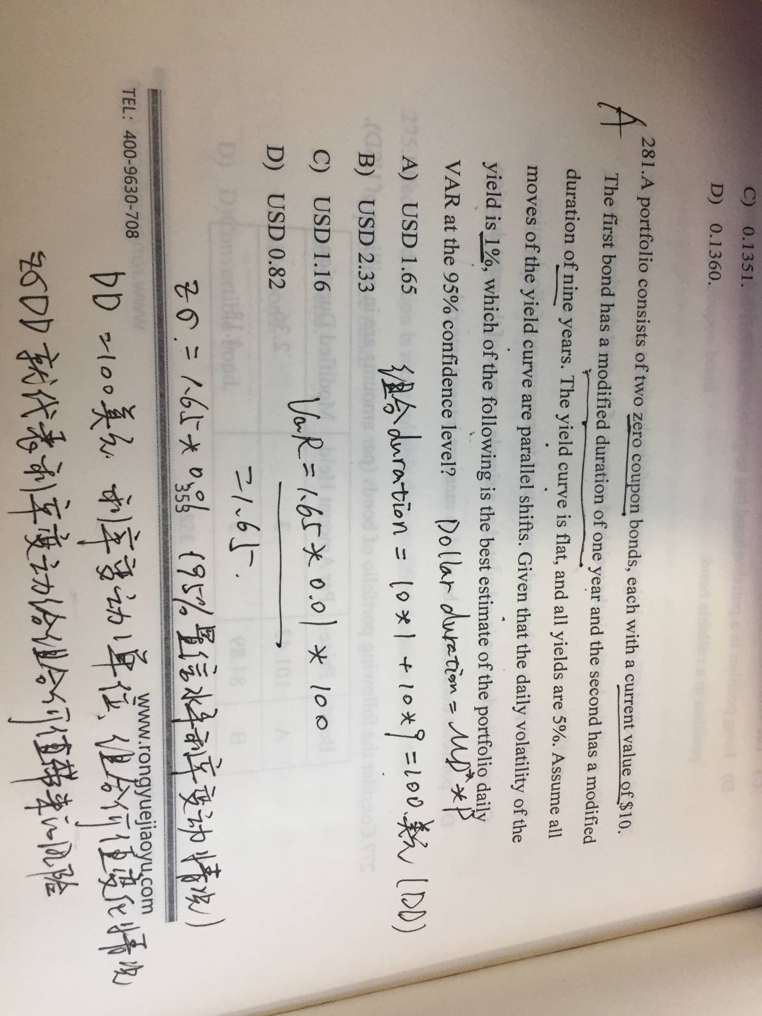题目给的修正久期,是利率变化一个单位,价格变动的百分比,(ΔP/P)/Δr。 你看我写的第一行,修正久期乘以P,就是dollar duration 了,ΔP/Δr。。