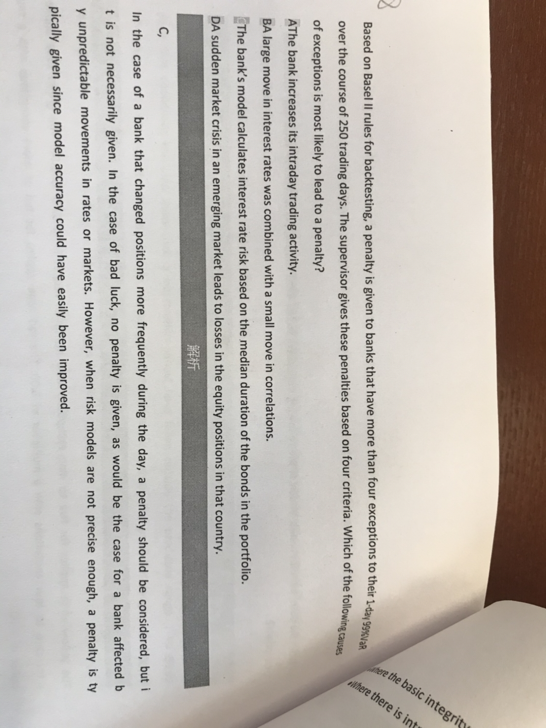 B是市场利率的极端变动,不一定要penalty,C选项银行使用模型设定有问题,需要penalty