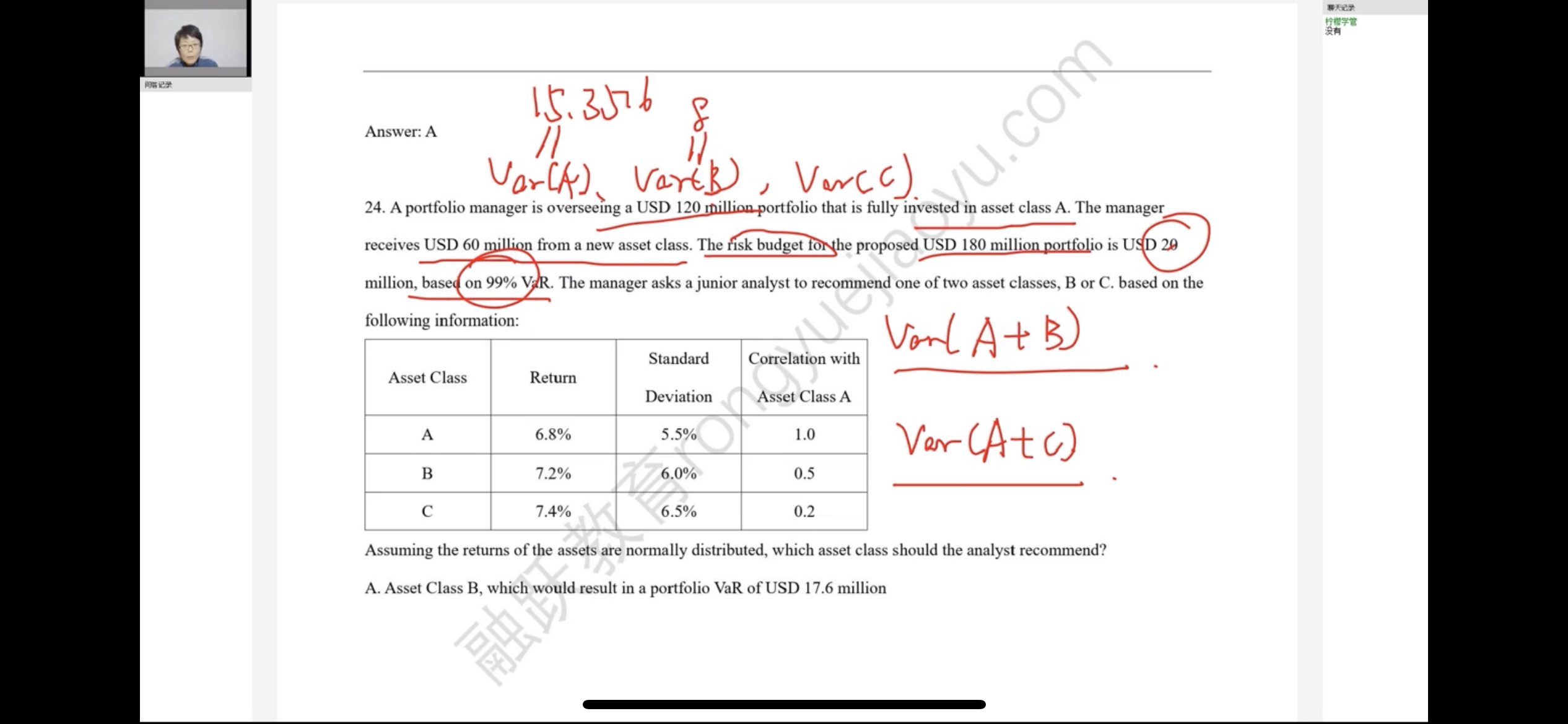 同学,这里是题目不严谨了,没有明确说明给出来的return是否是均值哈,所以就只考虑标准差来计算VAR了