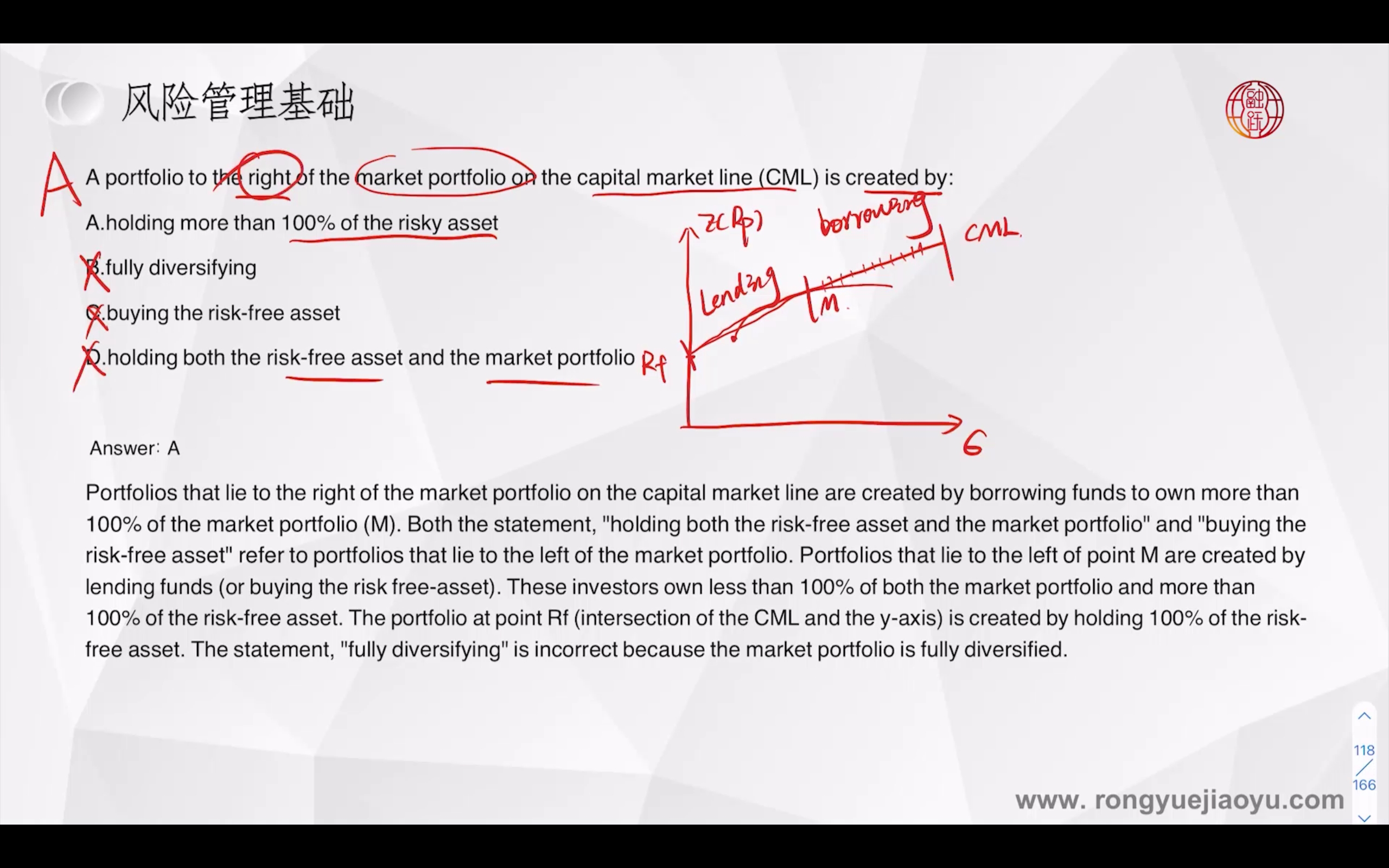 同学,持有无风险资产就意味着把钱lending给了那些想要持有更多(超过100%)风险资产的投资者哈