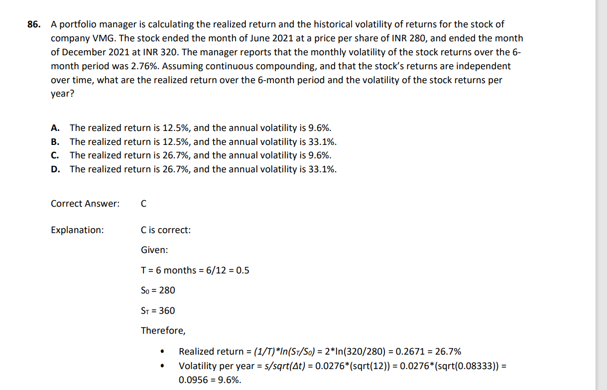 同学,对于几何收益的求解哈,公式如图所示,还进行了期限的调整;后面一问是关于时间的平方根法则