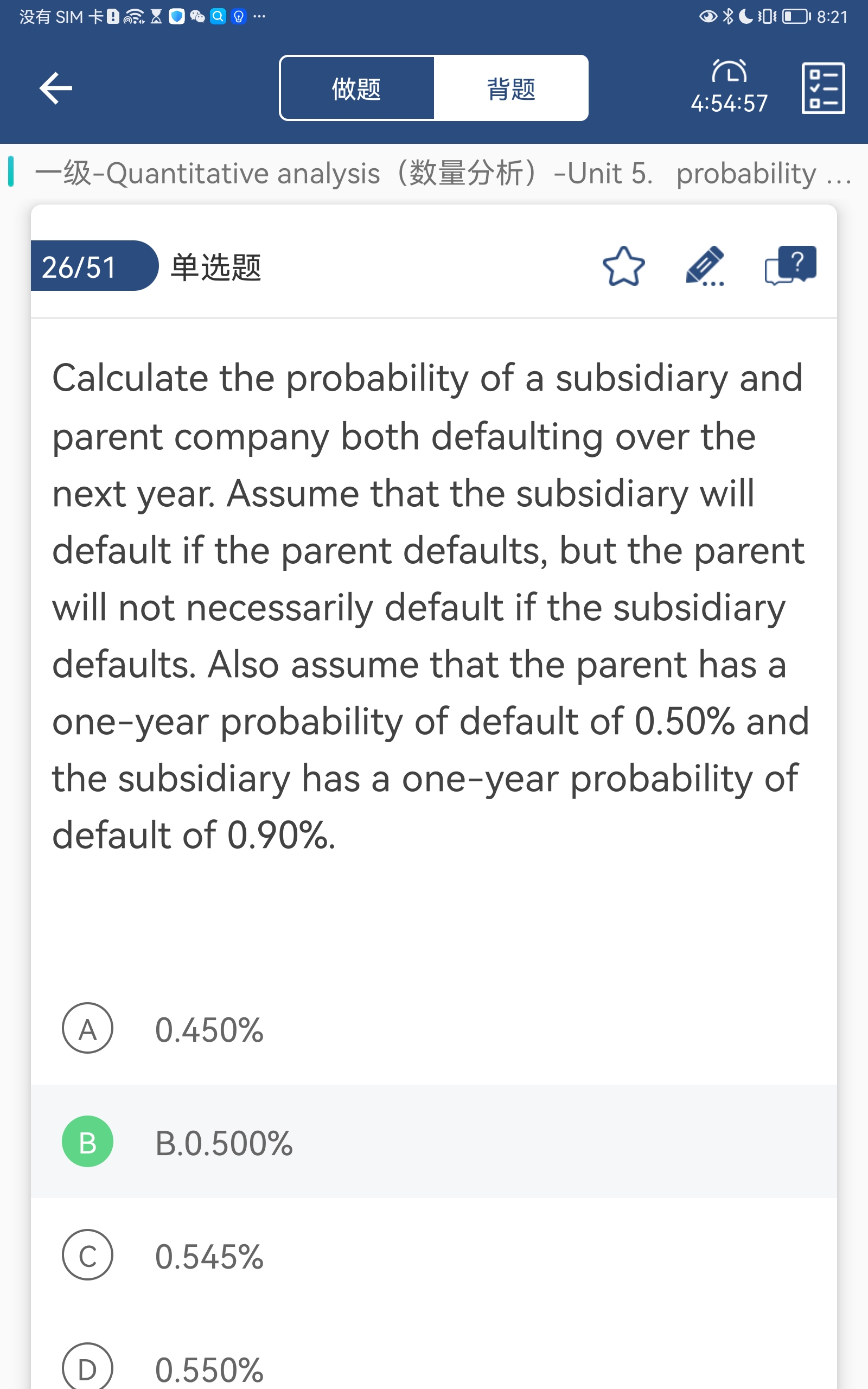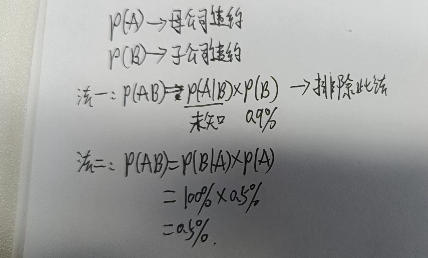 老师,他题目的意思不是子公司违约,母公司不一定会违约吗