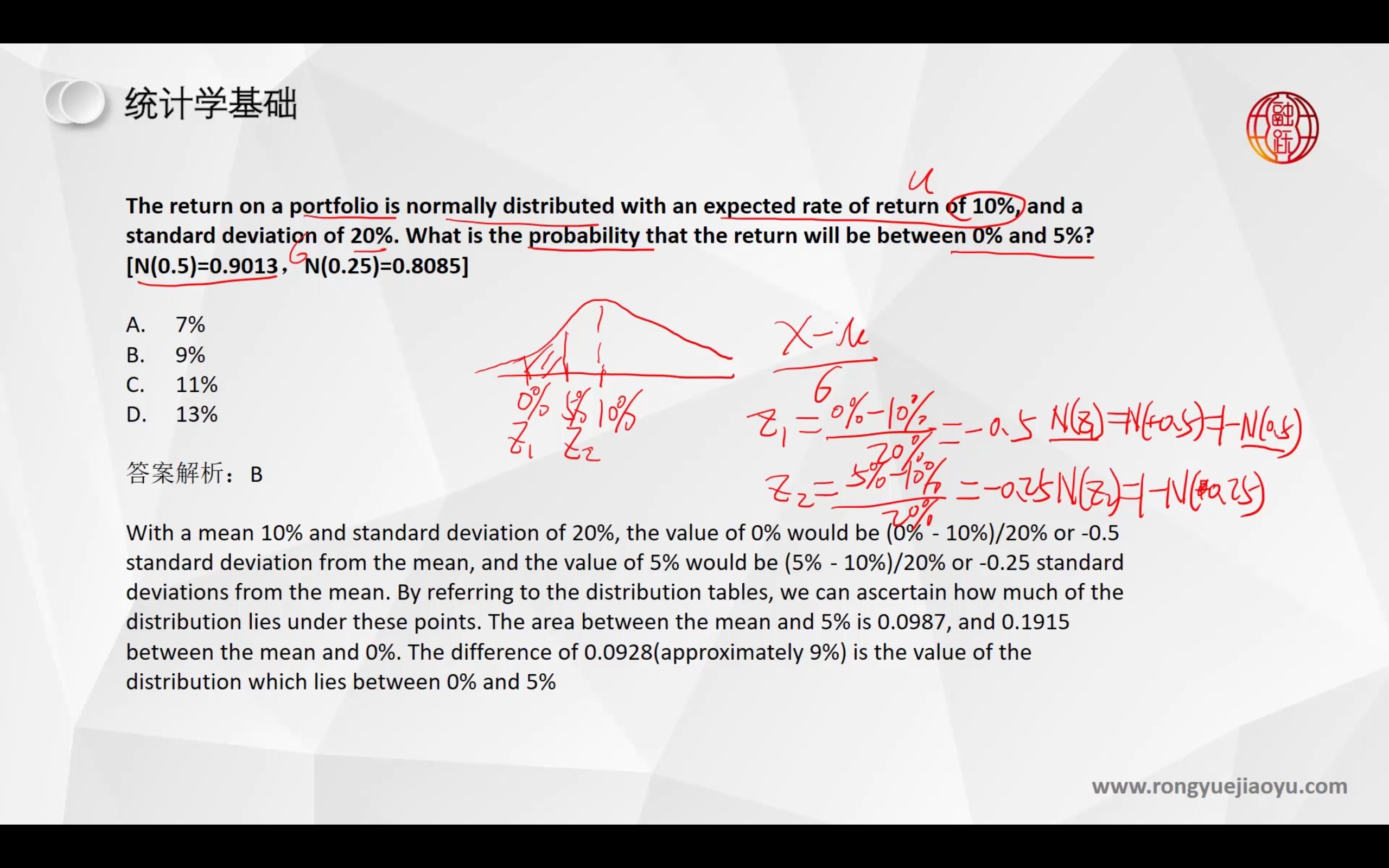 图片上很好 的解释了N(-0.25)=1-N(0.25),其他形式都不对。