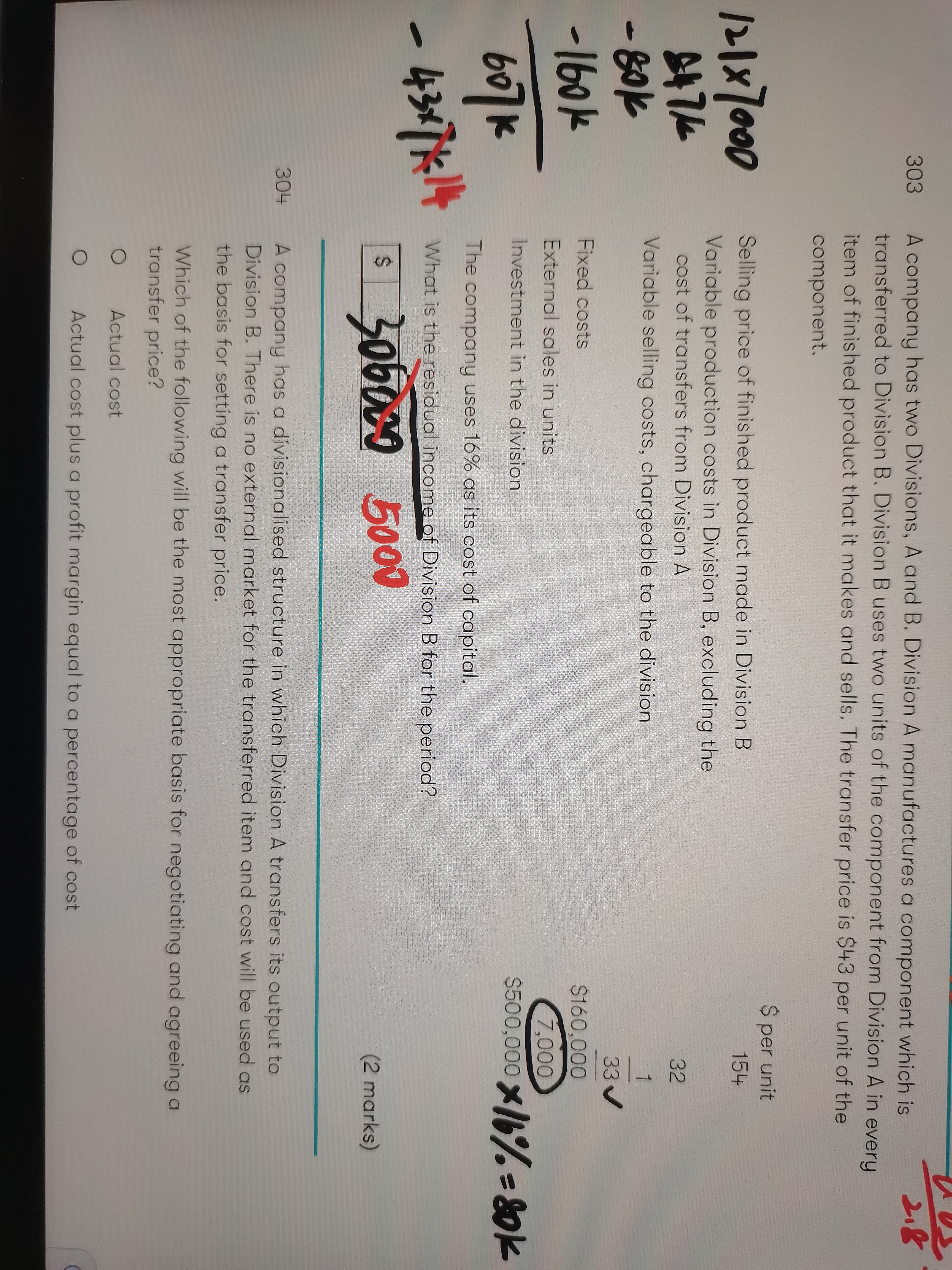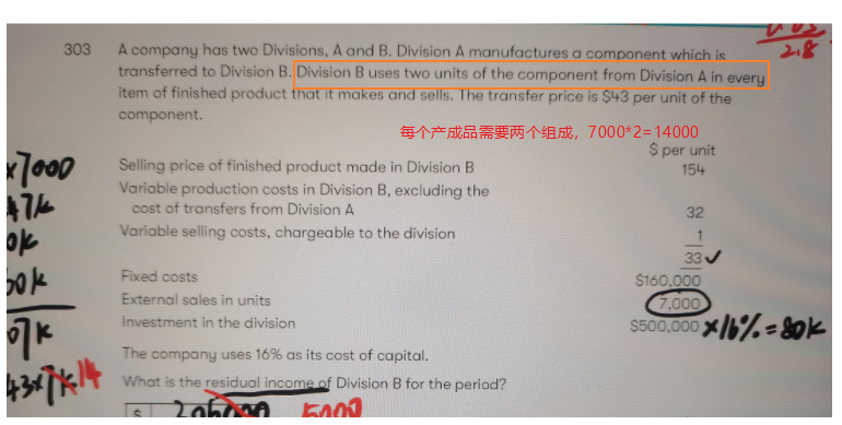 同学,如下图老师标注出回来的地方所示,B部门每个产成品需要两个A部门的产品组成。