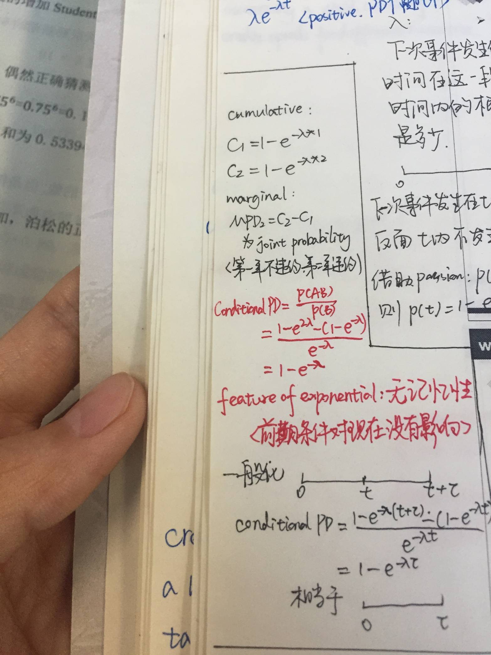lamda其实就是一个给定时间段的内的违约率,conditional pd是条件违约概率,就是p(a|b).题目中有given 的时候,后面就是条件。