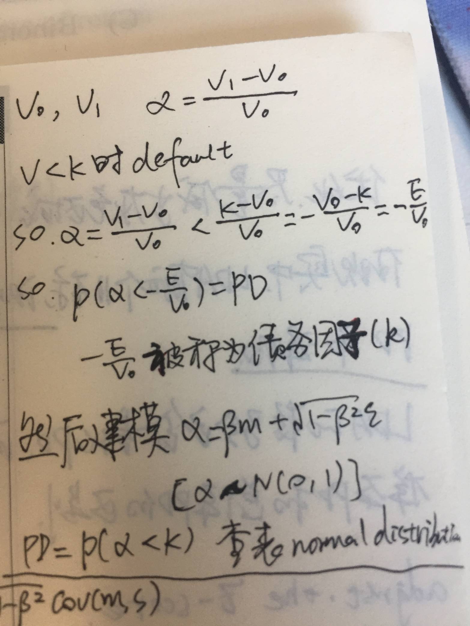 hazard rate是一段时间内的平均违约次数。 这是两种不同的计算违约的方法。指数的那个是指数纷纷的方法计算违约风险。你看第一张图。 conditional PD是单因素模型计算PD,是通过计算资产收益。再来研究PD,思路如第二张图。