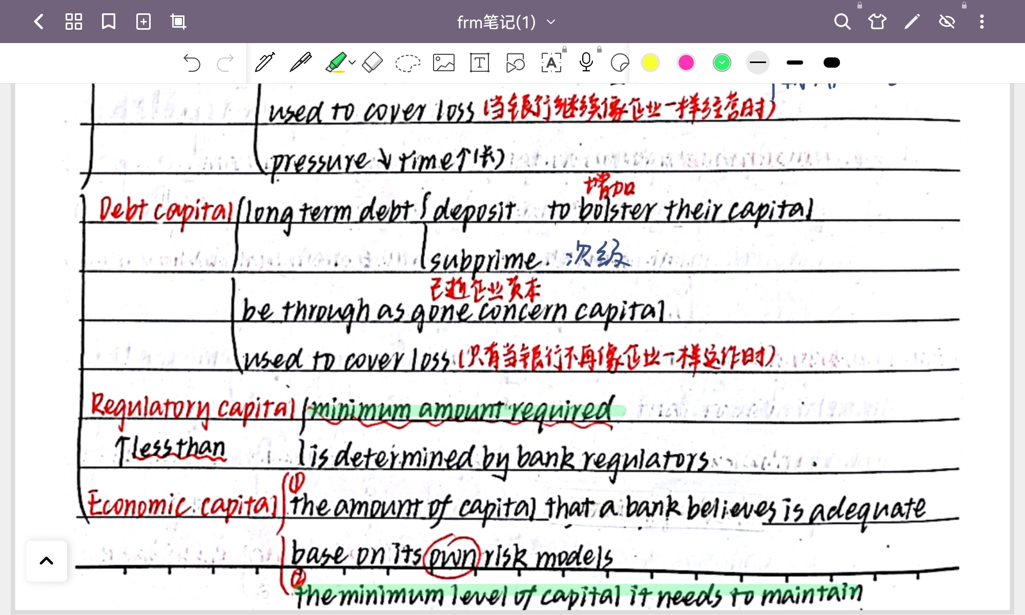 同学你好,这两个划线的部分没有什么本质的区别,都是需要i银行提前准备并维持的,只不过监管资本是强制要求达到有明确计算标准的,而经济资本的计算并没有一个严格的标准;另外因为经济资本在计算的时候考虑到了银行业务之间的分散化效应,所以计算出来的更小。