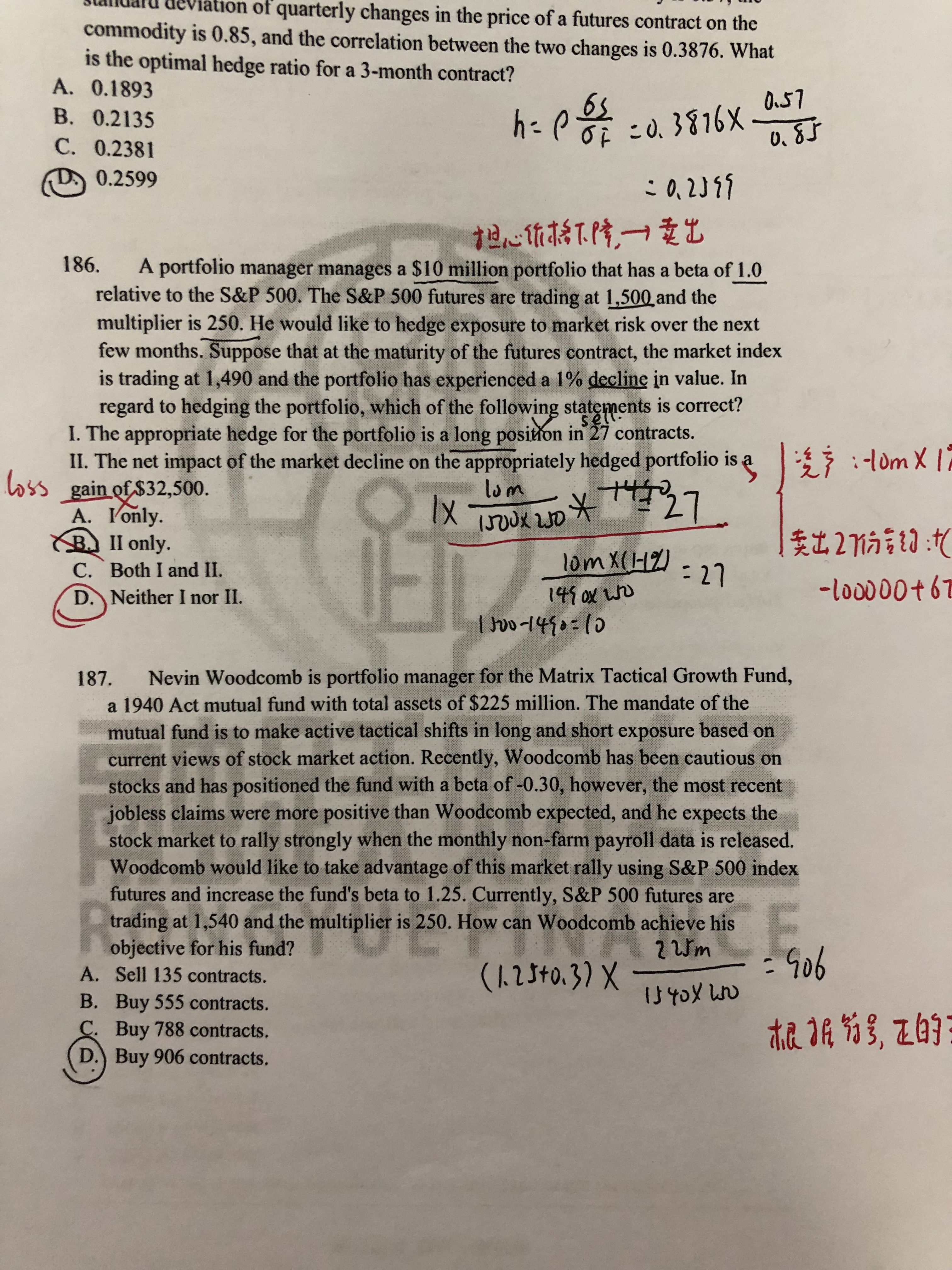 题目要做的是hedge,所以hedge之后的beta要变为零,所以完整的计算式是(0-1)*10m/(1500*250),计算出来的是-27.
