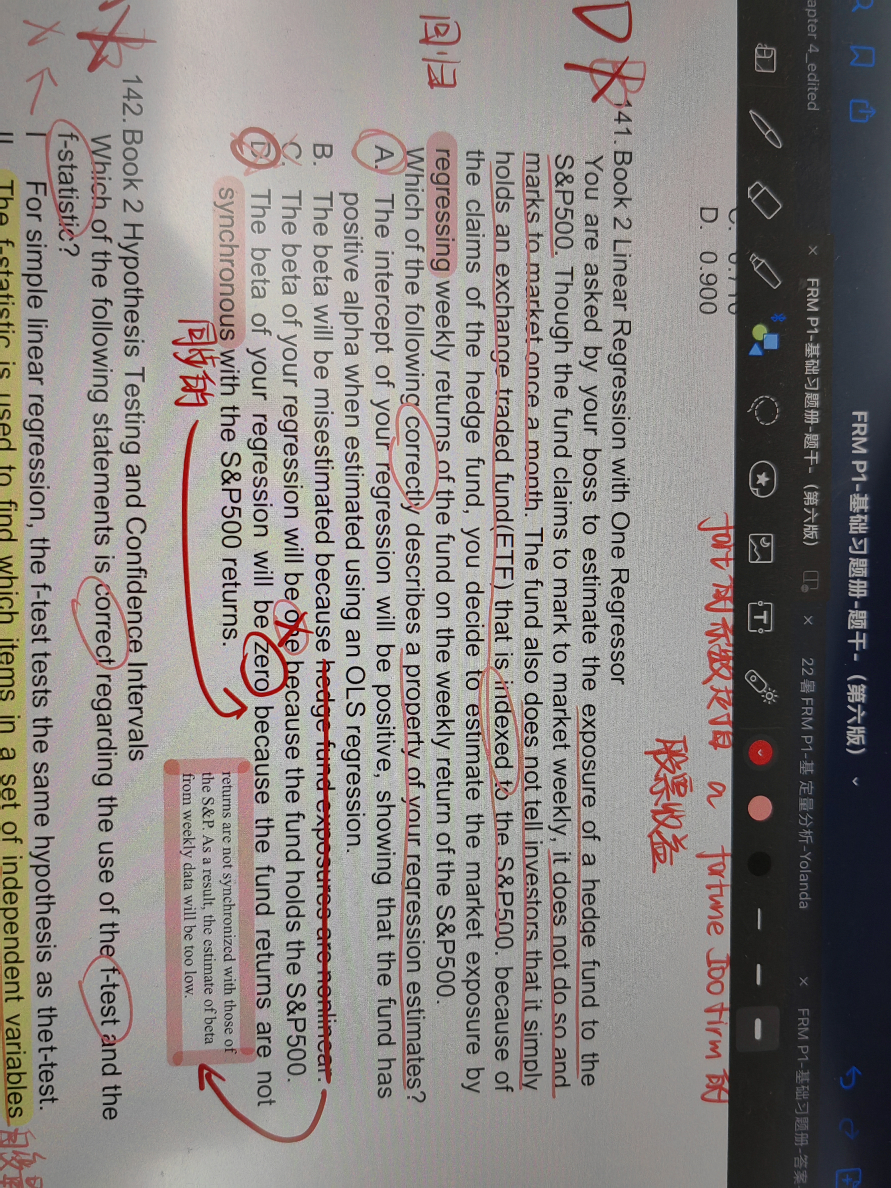 同学,A中正的alpha是jensen alpha,B中时间越长beta越大,敏感性越强,D中相关性等于0不代表着没有关系哈