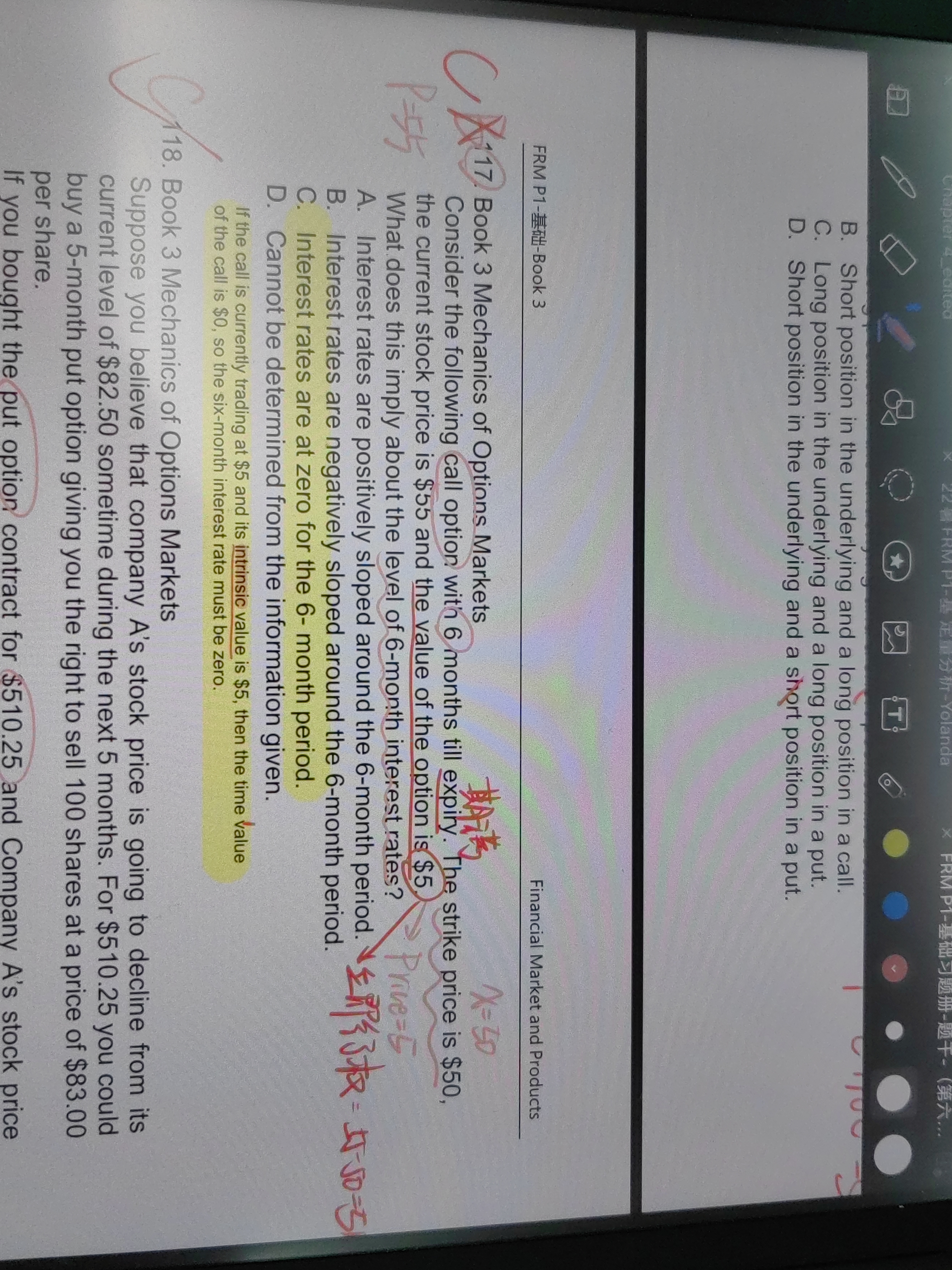 那么可不可以这样理解: 由于time value+intrinsic value=price, 当在本题中的current stock price为56, 得出intrinsic value=s-x=6, 而option价格5不变时, time value理论上是-1,则相对来说选B正确?