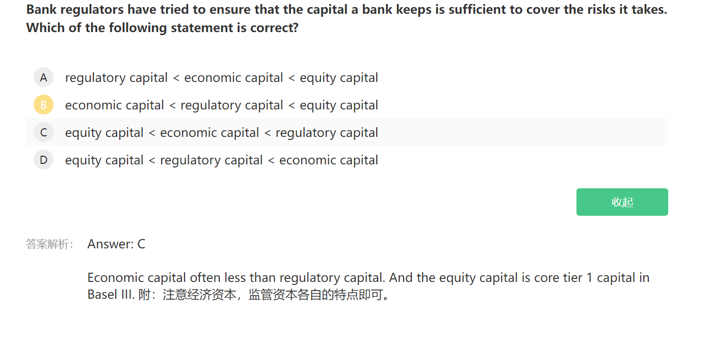 就比如这两个,第一张图写的是经济资本小于监管资本,第二张图又说监管资本是最小的,所以我有点不太明白