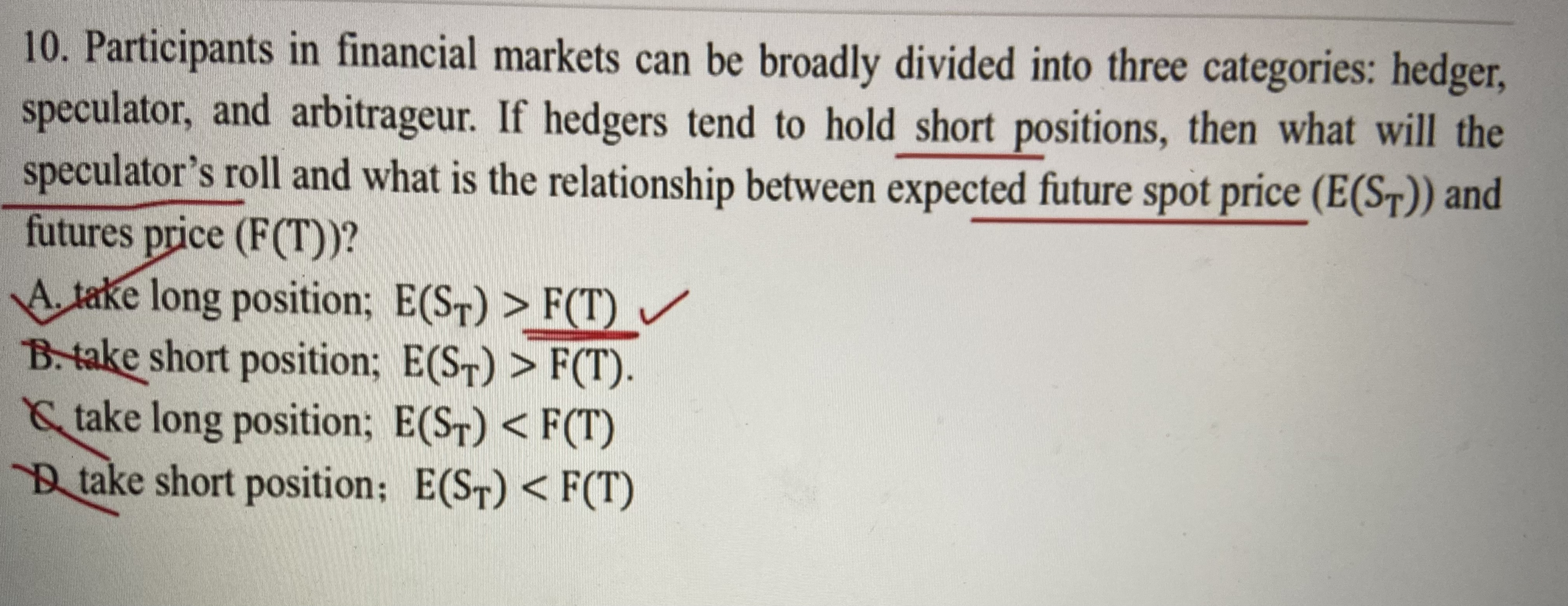 同学你好,题干最后为的是E(St)即预期未来的期货价格,预期未来期货价格大于远期价格,说明是正向市场,所以投资者要持有多头