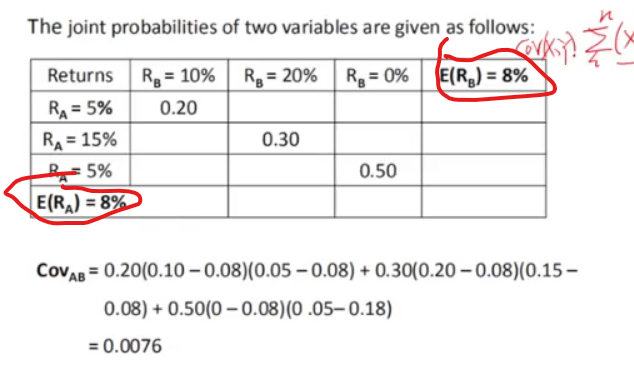 各收益率与对角线上概率的乘积加总