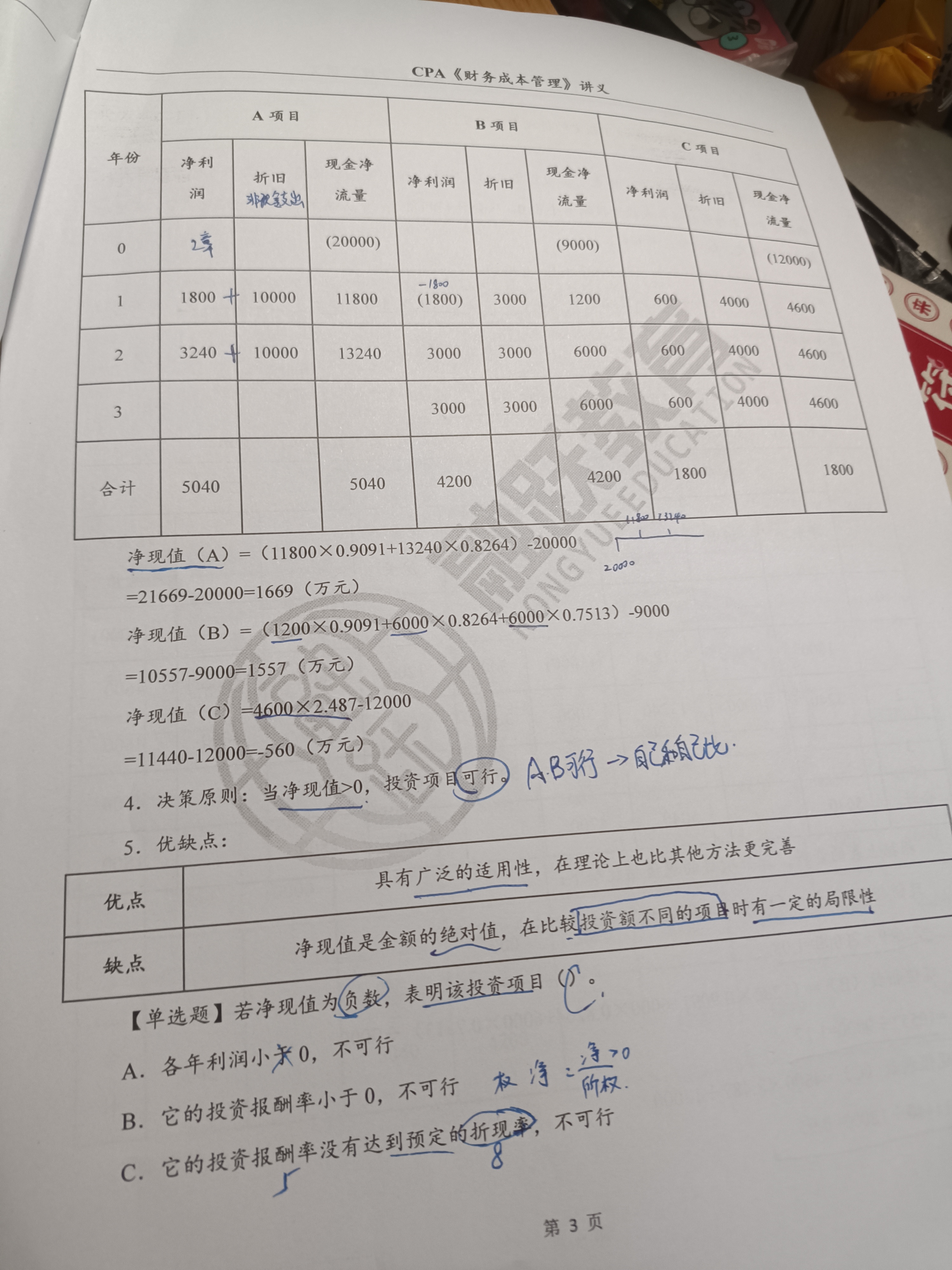 同学您好。p3的每年现金净流量是相等的,符合年金的特征,就可以用年金现值系数求现金净流量现值。当然p3也可以用复利现值去算,结果是一样的。