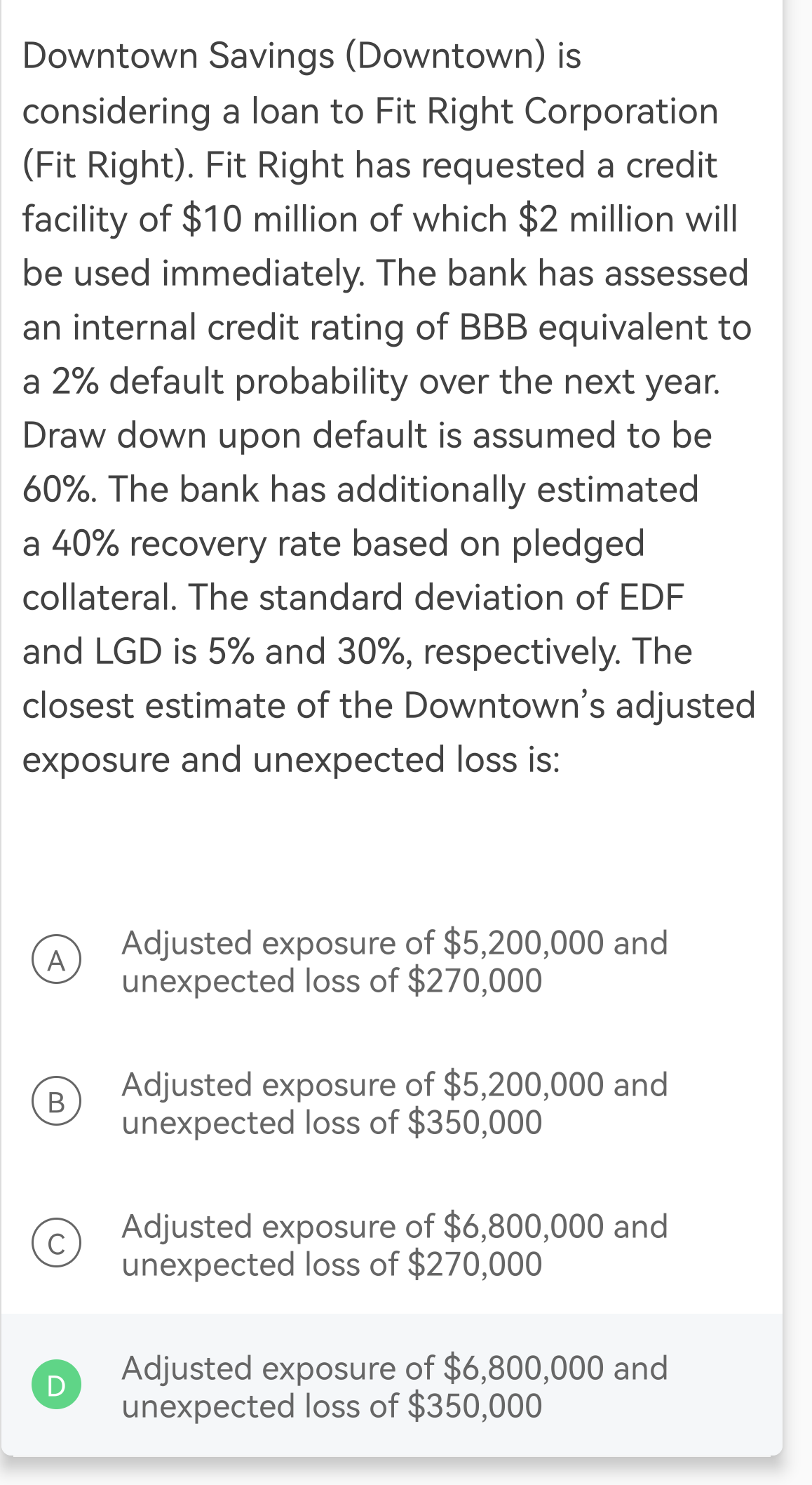 同学,例如在贷款中,一个人有10万的额度,用了6万后,当信用下降违约可能性增加,他会把剩余的4万额度取用的部分就是draw down,取用部分在4万中占的比率就是UGD哈