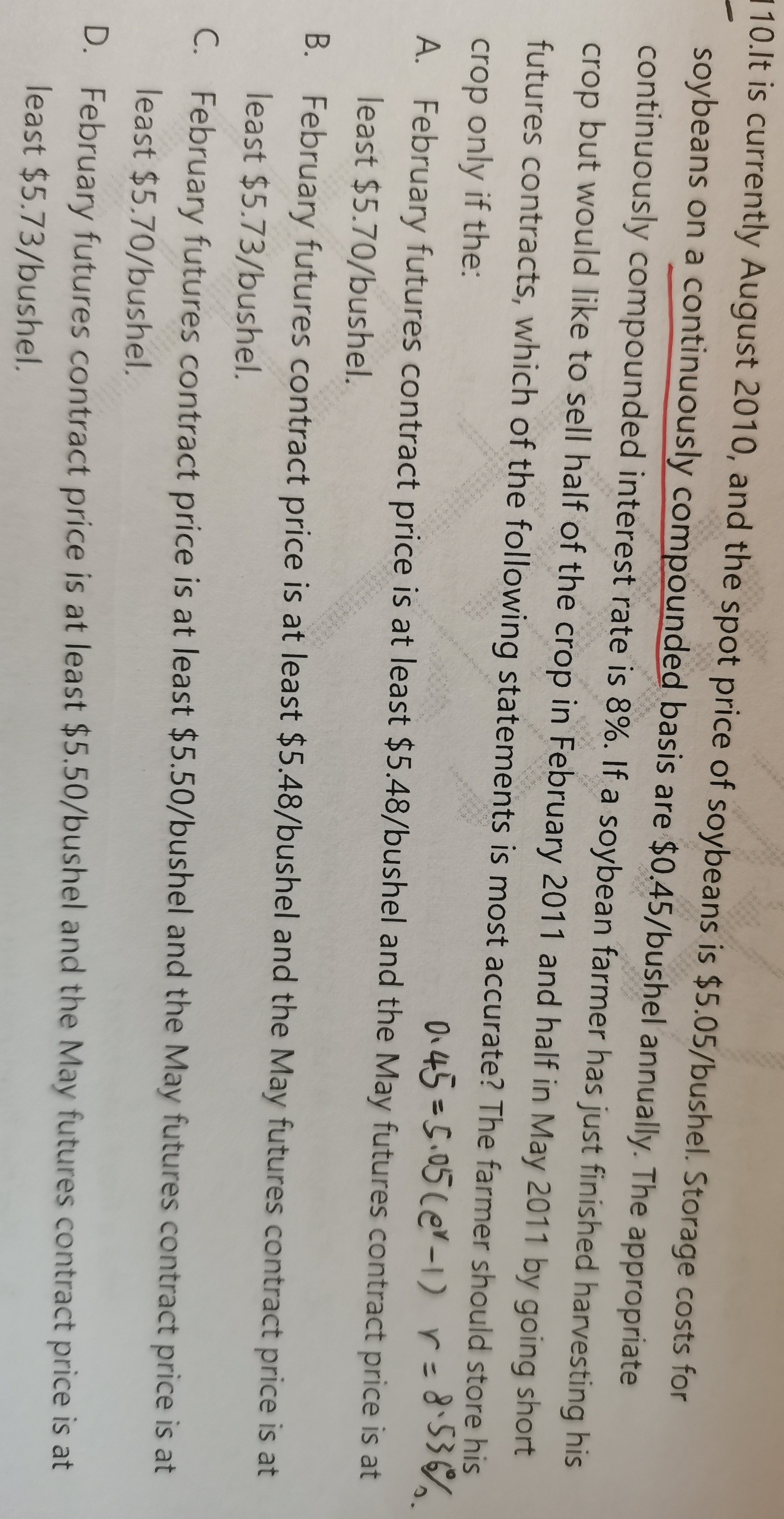 同学,严谨一些是好的哈,但是在经过大量题目乃至官方的练习后会发现,在使用仓储成本率时是连续复利形式,但在计算仓储成本率时很少用ln形式的,如果用ln形式的话计算结果可能会跟选项有偏差,那就需要转换形式再计算一次了