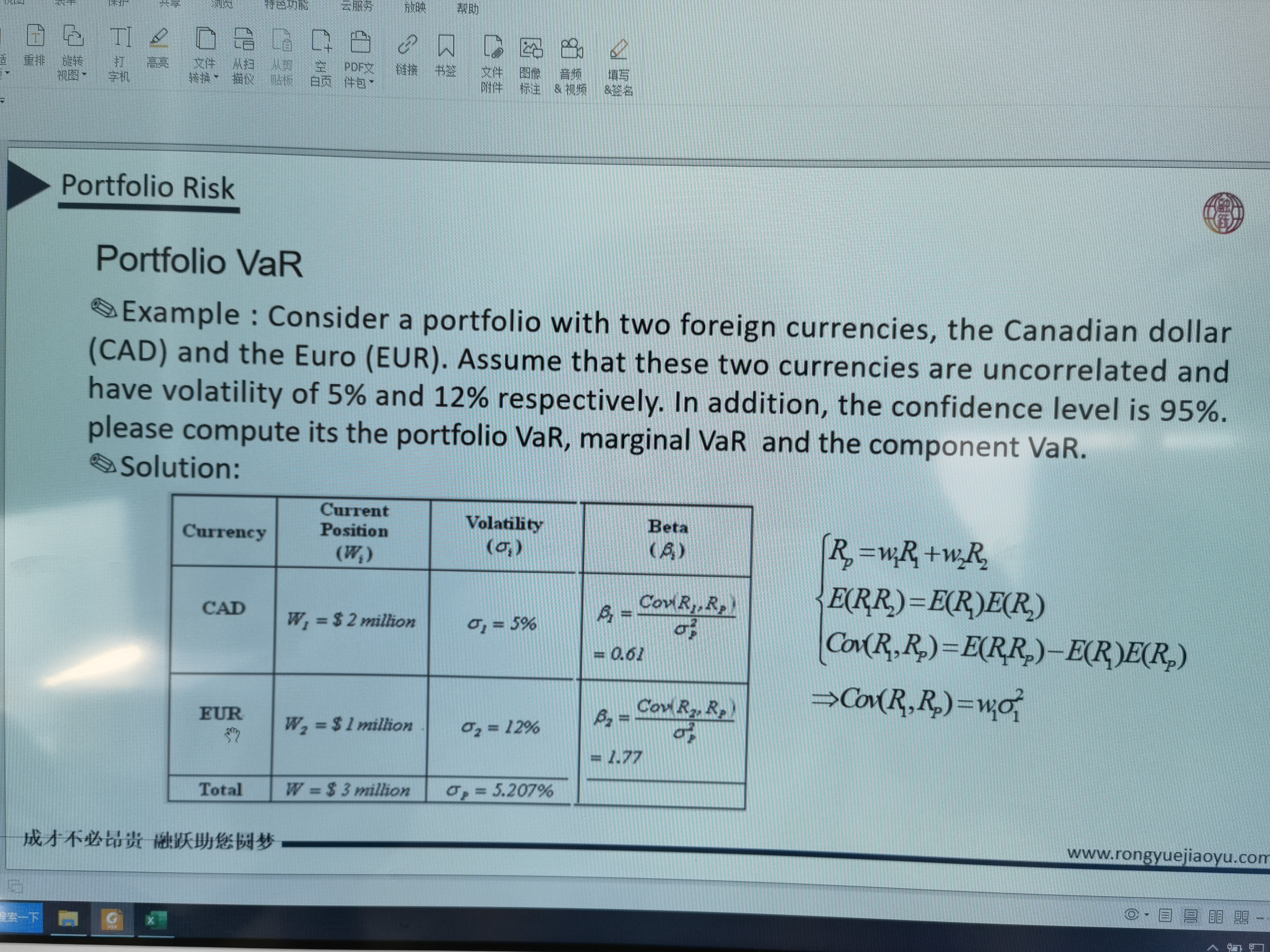 COV(R1,Rp)=COV(R1,ω1R1+ω2R2)=COV(R1,ω1R1)+COV(R1,ω2R2)=ω1COV(R1,R1)+ω2COV(R1,R2)=ω1σ1^2