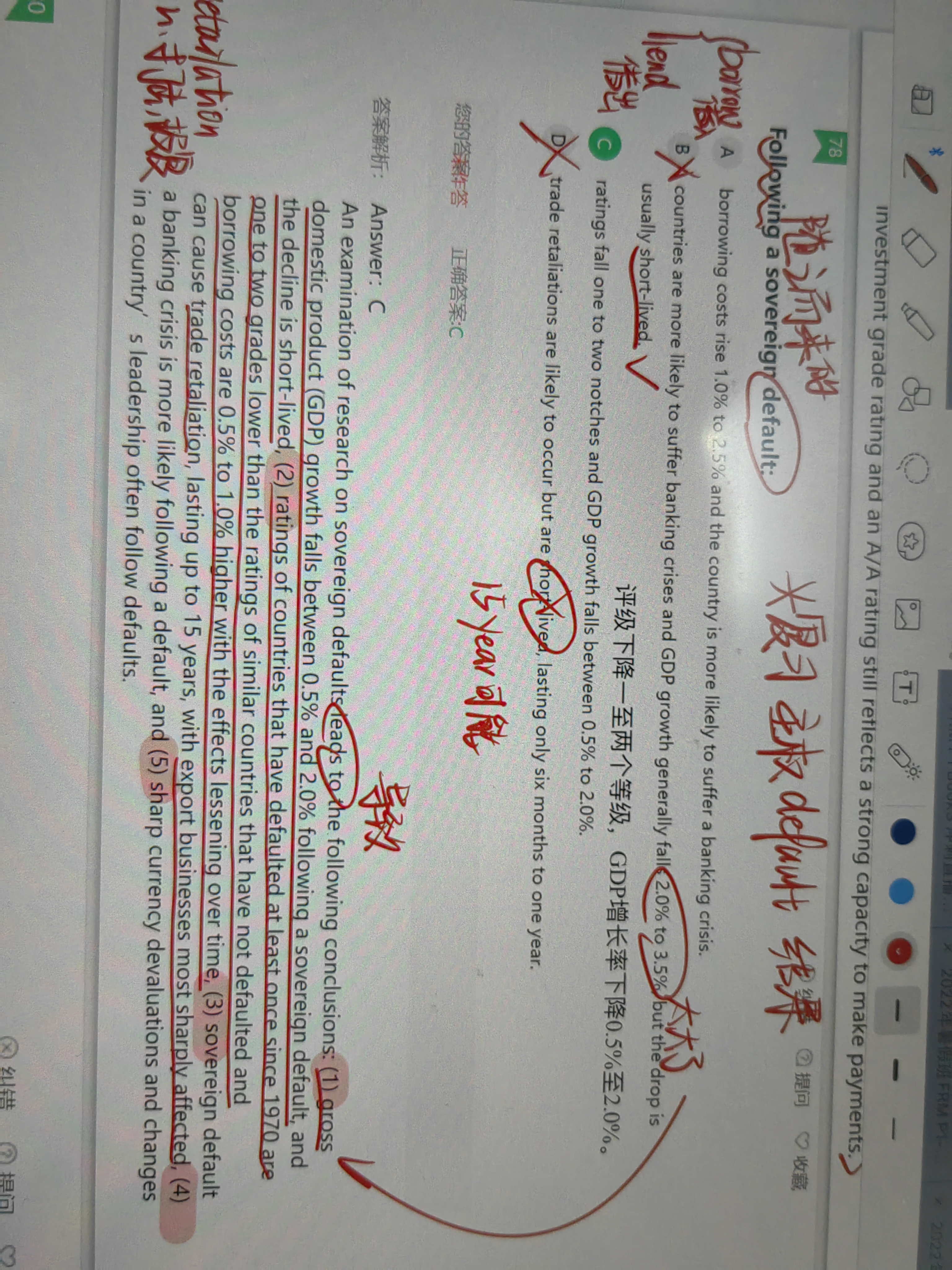 同学,根据解析中的补充说明,borrowing costs are 0.5% to 1.0% higher,A选项从1%升至2.5%已经高出这个范围,所以错误,解析中的补充知识点了解即可哈