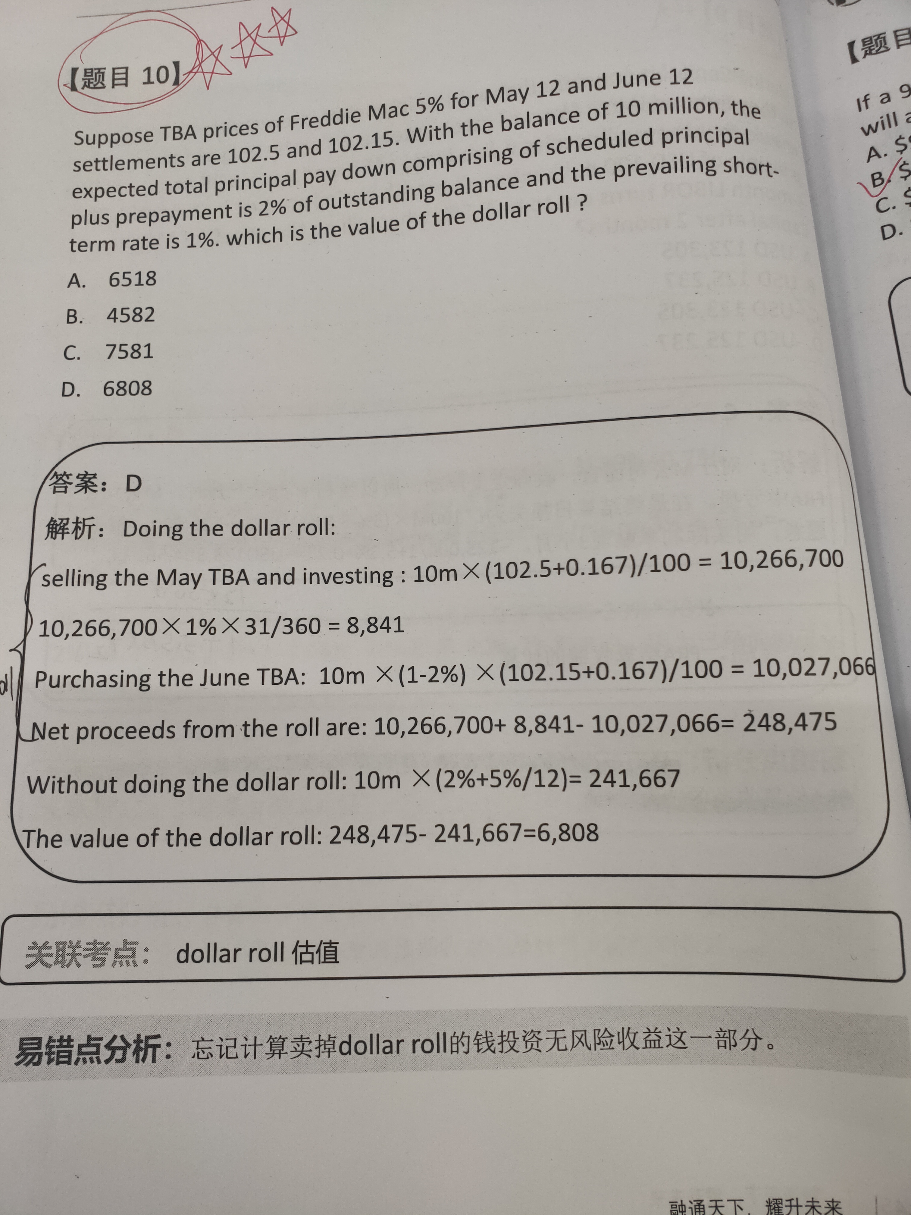 同学,关于dollar roll的计算是有一套完整流程和计算方法逻辑的,对这一块完全没印象的话,建议先去回顾一下对应的课程再做这道题哈