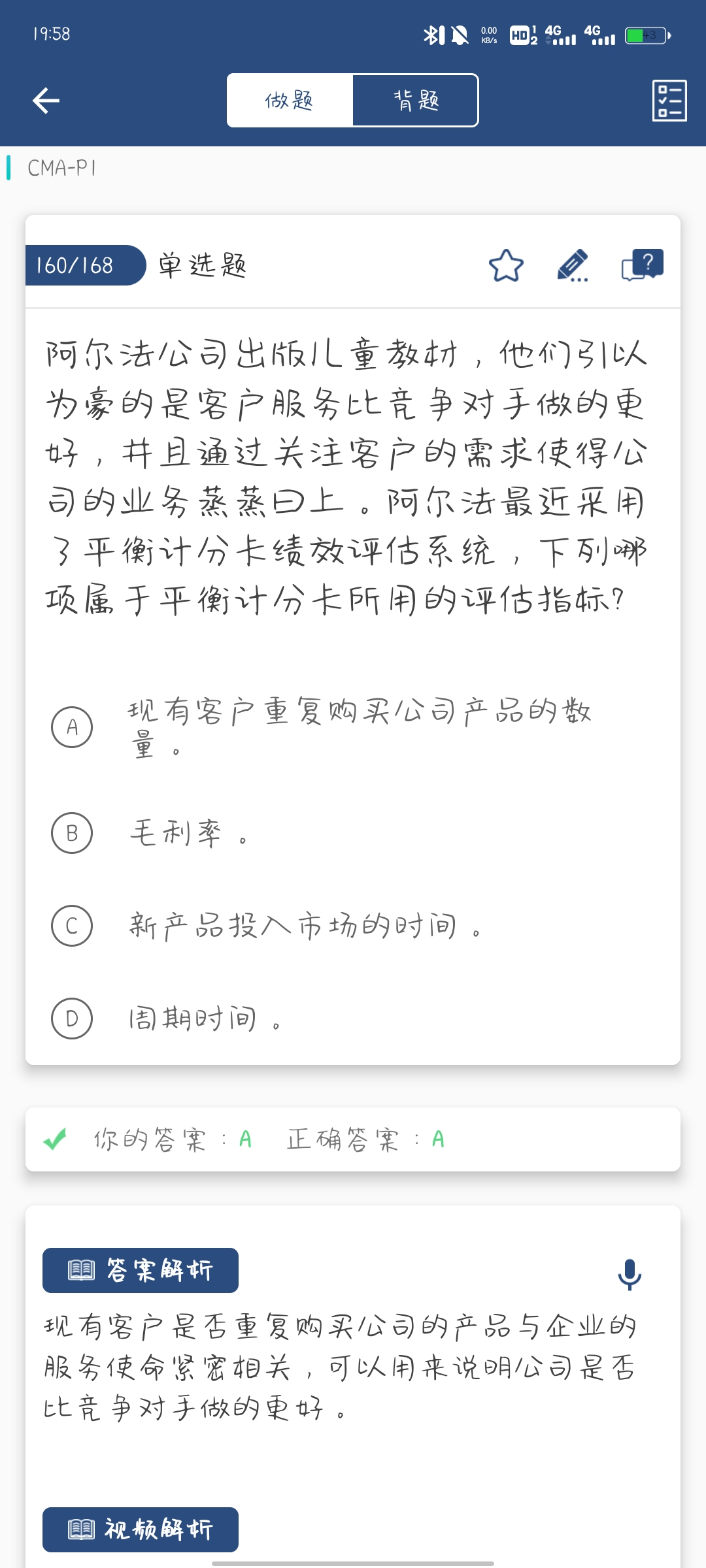 (1)同学你好,题目中关键词“客户服务“关注客户的需求”,下面几个选项中与客户需求相关的是A选项。(2)如果题干中提示词是关于抢占市场份额的,可以选择C选项。