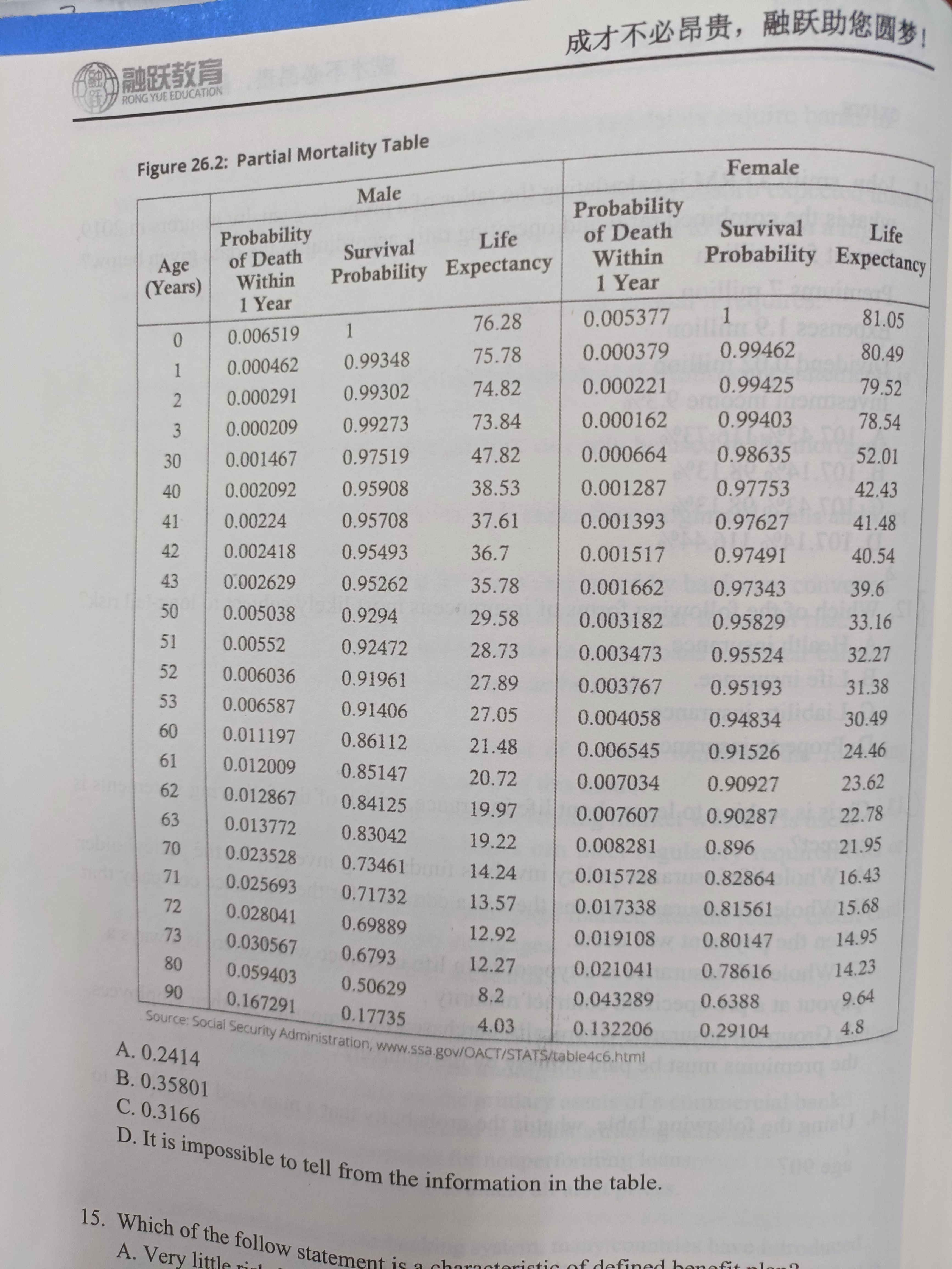 第一列是在一年内死亡的概率,你所述的列式不符合题意